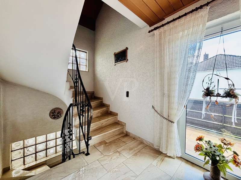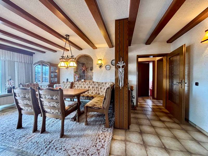 This spacious two-family house from 1985 is nestled in a quiet neighborhood in Staufenberg-Treis. The property offers a comfortable and spacious living solution on a living space of approx. 250 m² and a plot of approx. 853 m². The property impresses with its well thought-out room layout and the option to create additional living space of 100 m² by converting the attic into another residential unit. The property is therefore suitable for larger families as well as for a combination of living and working, a two- to three-generation use or even the classic model of owner-occupation including rental. The apartment on the ground floor has three rooms and a size of approx. 100m² with a south-facing terrace. The main apartment on the upper floor of approx. 150 m² impresses with three bedrooms, a guest WC, a daylight bathroom and a tasteful open-plan living/dining area with a fireplace for cozy evenings. This two-family house presents itself in a well-kept condition and benefits from its exposed location and well-maintained furnishings. The electrically operated heating system always provides cozy warmth. The spacious outdoor area is particularly noteworthy. The garden offers a green oasis for relaxation and leisure activities. It invites you to enjoy convivial barbecue evenings and relaxing summer afternoons. There is also an electric double garage on the property, which offers plenty of parking space. The large courtyard creates additional parking space or space for leisure activities. Ideal conditions are provided by a further extension option above the double garage, which can be used as a workshop, hobby room or office space, creating even more living space.