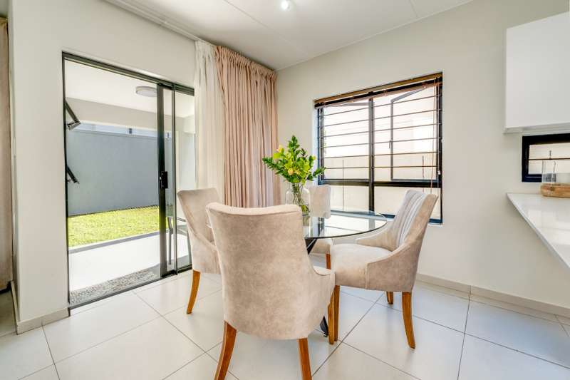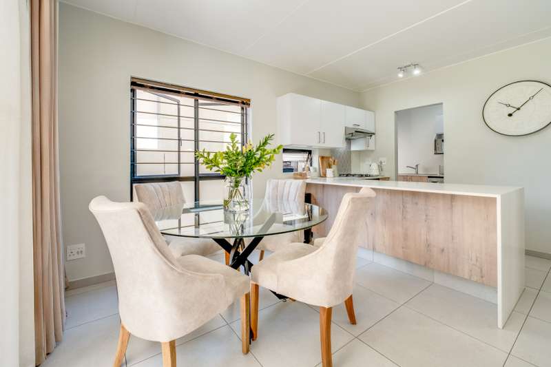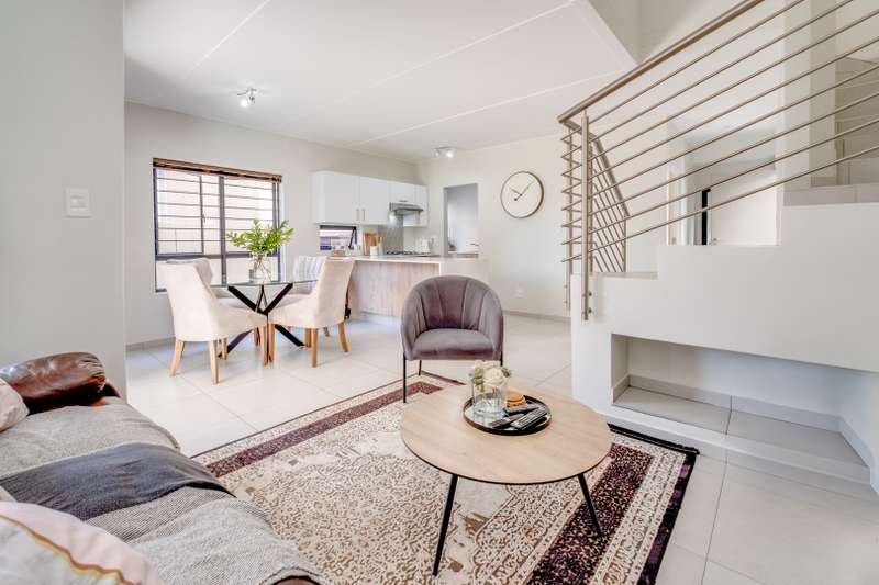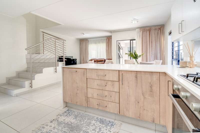 Nestled in the heart of the secure Vachellia estate in Broadacres, this beautifully designed 3-bedroom, 2.5-bathroom home offers modern comfort, thoughtful design, and an effortless lifestyle. Step inside to discover spacious open-plan living, where natural light pours into the elegant lounge and dining area, seamlessly extending to a covered patio and private garden—a perfect setting for both relaxation and entertaining. The sleek kitchen, with its quality finishes and ample storage, makes everyday living a pleasure. Upstairs, three well-proportioned bedrooms ensure tranquility and privacy. The main suite, complete with an en-suite bathroom, provides a serene retreat, while two additional bedrooms share a stylish full bathroom. Thoughtful touches, including built-in cupboards, elevate the sense of space and convenience. Security is paramount, with 24/7 off-site CCTV monitoring and an automated double garage offering direct access to the home. Positioned moments from Broadacres Shopping Centre, Fourways Mall, and Montecasino, this home balances convenience and exclusivity. Your next chapter starts here. Call today to schedule a viewing!