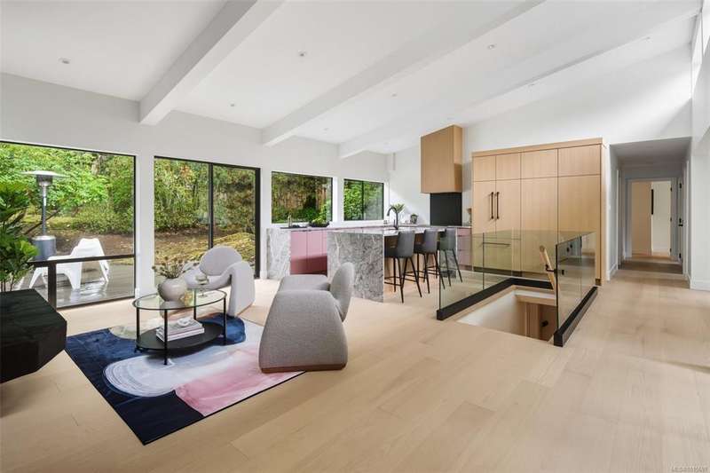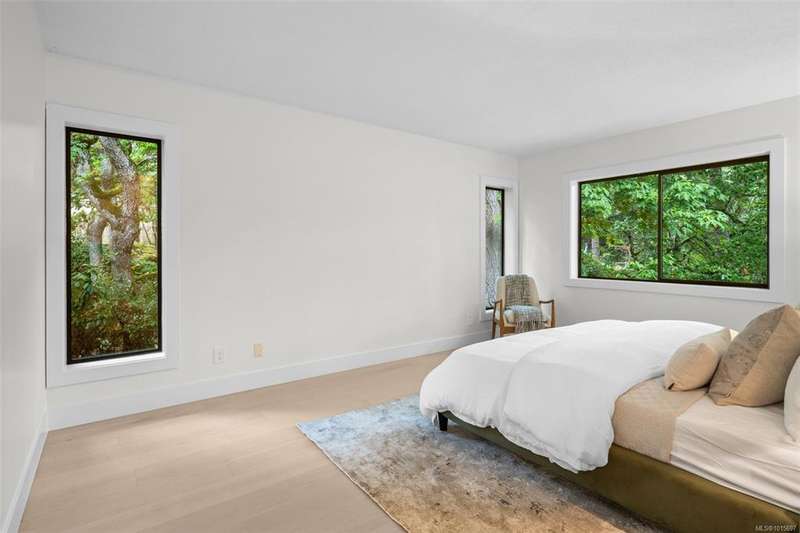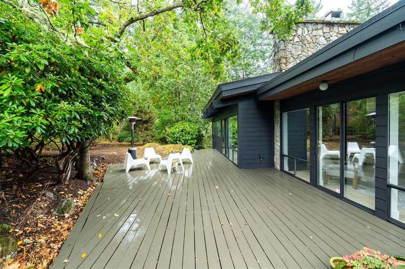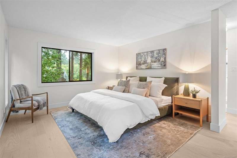 Mid-century modern magic meets timeless design in this beautifully updated Broadmead home. Perched on a south facing 14,374 sqft private lot, the striking exterior offers clean lines and iconic curb appeal. Inside, natural light pours through floor-to-ceiling windows framing views of lush greenery. All new flooring and paint throughout including an incredible new kitchen with Italian marble countertops and Fisher & Paykel appliances. Off the kitchen & living spaces is a very private oversized deck perfect for entertaining or quiet mornings. The spacious primary suite offers plenty of room with large walk in closet and 5 pce ensuite. A versatile bonus room off the garage offers endless possibilities—gym, office, or extra storage. Nestled in a coveted enclave near walking trails and Broadmead Village this home blends privacy, style and nature in perfect harmony. Contact your Realtor today to book a showing.