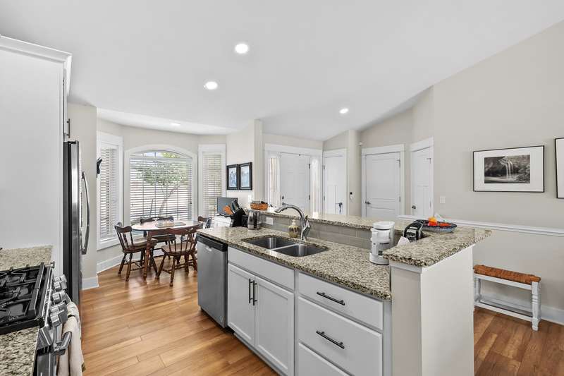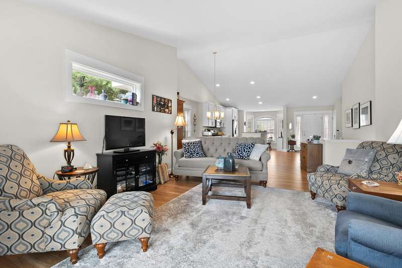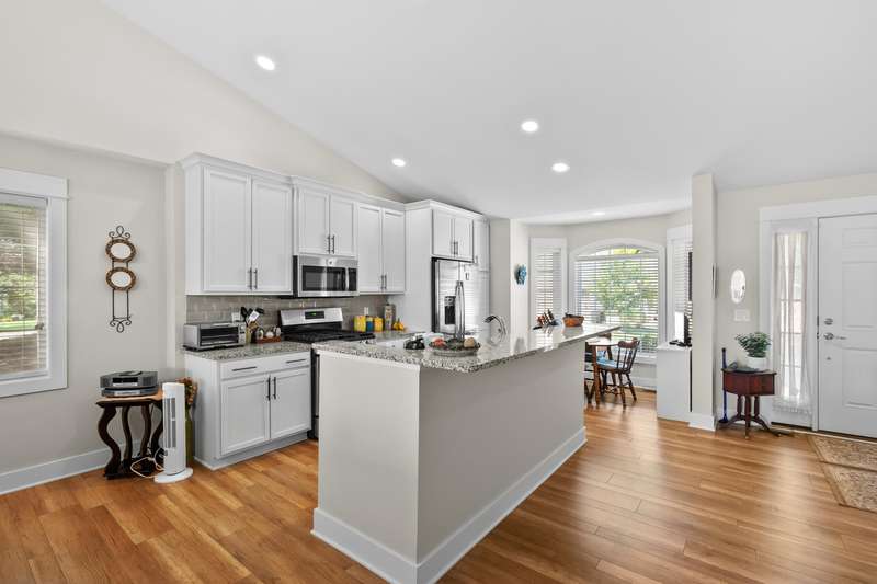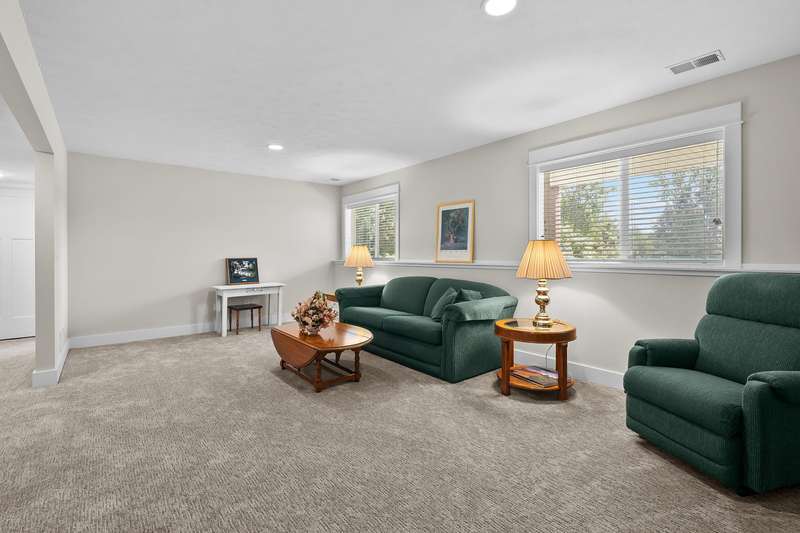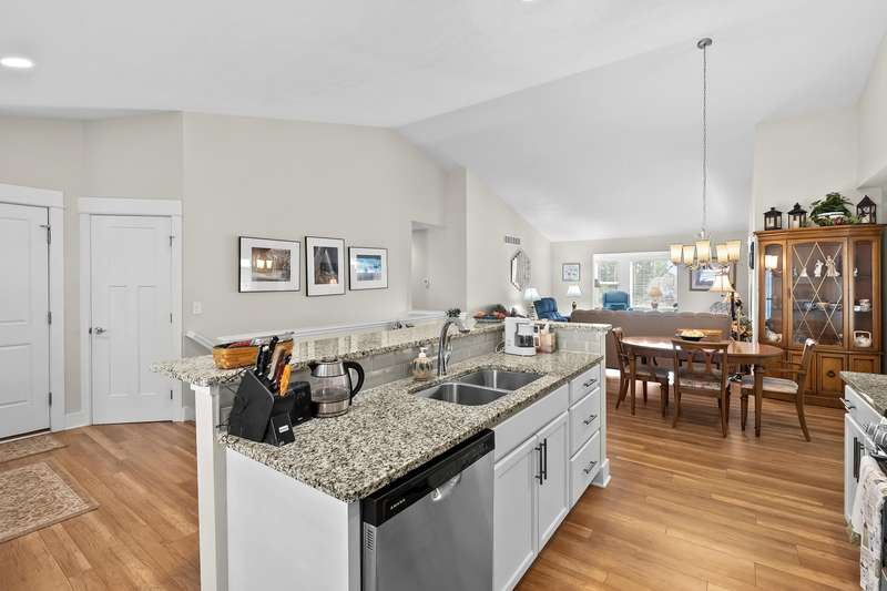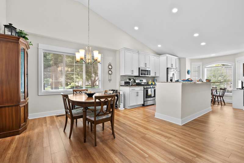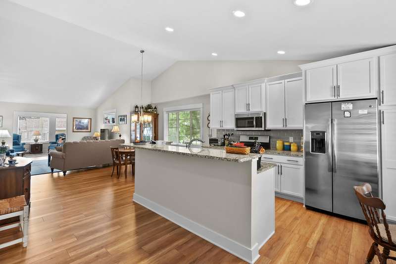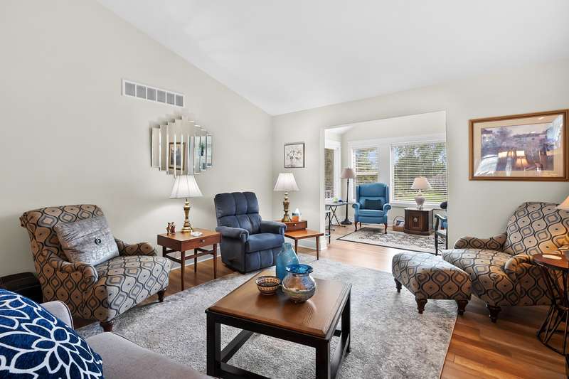 Immaculate, move in ready condo at Redstone Farms! Spacious 3 bedroom, 3 bathroom with gourmet kitchen complete w/granite countertops, a walk-in pantry, center island & high quality cabinetry with plenty of storage. The main level features laminate wood flooring throughout the kitchen and entryway. Living room w/vaulted ceilings flows into the four-season room with fantastic wooded views. Additional main floor features includes a spacious primary suite with ensuite bathroom, main floor laundry room, 2nd bedroom & half bathroom. The finished daylight lower level provides additional living space w/ large family room, third bedroom & another full bathroom. Plenty of storage. Redstone Farms features green vistas & towering oaks that add to the tranquil setting. The natural beauty of this community is enhanced by the lush golf course, which borders the property. Nestled in nature, yet only minutes from shopping & restaurants.