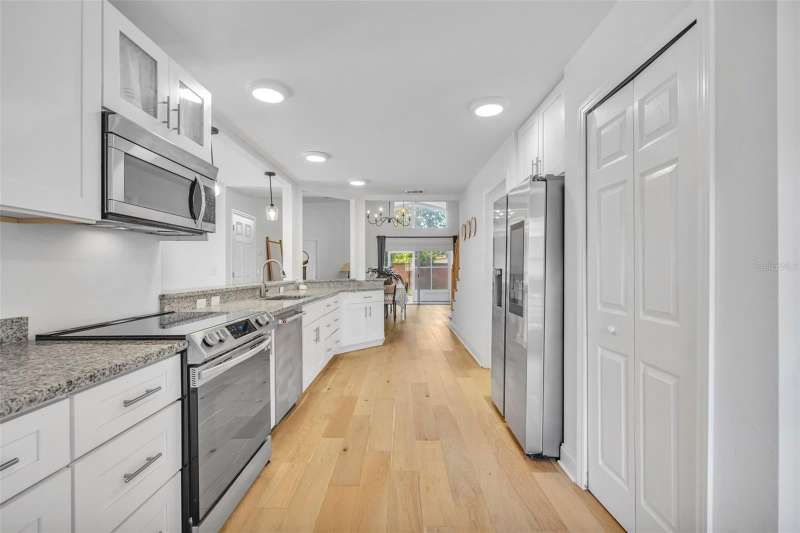 Nestled in the highly sought-after gated community of Crescent Park in Belle Isle, this beautifully maintained 5-bedroom, 3-bathroom home offers the perfect blend of comfort, style, and serenity. Step inside to an abundance of natural light and a thoughtfully designed split floor plan. The primary suite is privately located on the main floor, while a spacious upstairs bedroom with its own full bath makes an ideal guest suite, teen retreat, or home office. You’ll love the soaring ceilings, elegant oak wood flooring, and the open-concept kitchen featuring granite countertops and a seamless flow into the living area—perfect for both everyday living and entertaining. Step outside to your screened-in patio and manicured backyard, offering a peaceful escape for morning coffee, evening dinners, or weekend gatherings with a mango tree as a plus! Major updates include a new roof (2025) and HVAC system (2023), giving you added peace of mind. Located near the Conway Chain of Lakes. Enjoy evening strolls by the water, take advantage of nearby Warren Park with tennis courts and a playground, or simply relax in your private oasis. Conveniently located just 5 minutes from the airport, 15 minutes to downtown Orlando, and a short drive to Orlando’s renowned attractions, dining, and shopping. Whether you're hosting family and friends or enjoying a quiet evening on the patio, this home is one you’ll truly love.