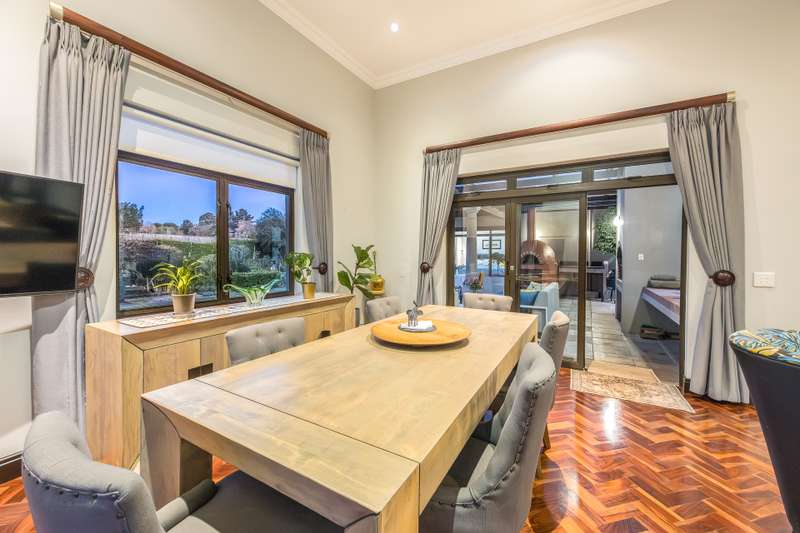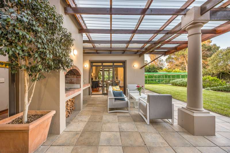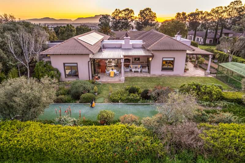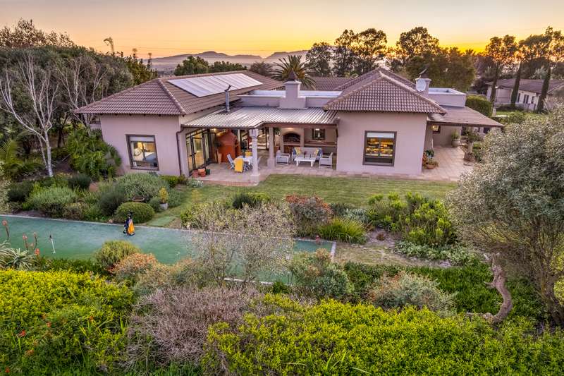 Tucked away in the exclusive and secure Klein Zevenwacht Estate, this exceptional designer residence offers a unique opportunity to live surrounded by the charm of a working vineyard. Located just 1.6 km from the renowned Zevenwacht Wine Estate, homeowners can enjoy wine tastings, rejuvenating spa treatments, fine dining, and a variety of outdoor adventures, including mountain biking, 4x4 trails, hiking, picnicking, and access to nearby golf courses. Key Features: • Private 4-hole putt-putt course – perfect for family fun • Greenhouse ideal for cultivating your own fresh produce • Entertainment area equipped with a large built-in pizza oven and braai • 12 solar panels, 3 batteries, and inverter – promoting energy efficiency • Private borehole with a 5000L holding tank for automated garden irrigation • Dedicated storeroom for gardening tools and equipment • Meticulously landscaped garden with lush lawn and established shrubs Prime Location & Accessibility: • Stellenbosch’s top schools and university just 15 km away • Only 20 minutes to Cape Town International Airport • Easy 35-minute drive to Cape Town’s city centre Arrange your viewing to this prestige home today