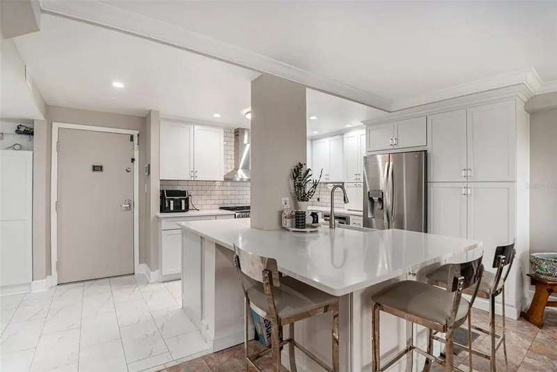 Discover the epitome of luxurious waterfront living at the prestigious Pinnacle Condominiums with breathtaking views of Tampa Bay and Bayshore Boulevard. Beautifully renovated with two balconies, open floor plan, and three bedrooms. Step inside your new rental with new wood cabinets, quartz countertops, large island with breakfast bar and newer appliances, complemented by new tile flooring throughout. You are Hurricane ready with PGT rated doors and sliders, installed in 2018, provide peace of mind while allowing natural light to fill the space, enhancing the home’s modern design and inviting warmth. There are no bad views as you unwind and enjoy the peaceful Feng Shui of flowing water and gentle breezes in total privacy on the main balcony or have a quiet morning coffee from the 3rd bedroom’s smaller private balcony. All the bedrooms are generously sized with the primary and third bedroom having en-suite bathrooms with beautifully updated walk-in showers. The second bedroom shares the hallway bathroom that has also been updated. Residents of The Pinnacle enjoy resort-style amenities including an outdoor swimming pool, game room, gathering room, 15th-floor aerobic and weight rooms, secured access, storage rooms, ample guest parking, and covered garage parking. The crowning jewel of the community is the 16th-floor observation decks, where you can take in panoramic views of South Tampa, Tampa Bay, and even witness space launches—an extraordinary experience for residents and guests alike. Located just minutes from downtown Tampa, Water Street, MacDill AFB, top-tier shopping, dining, and scenic Bayshore Boulevard, this exceptional condo seamlessly blends modern luxury with the tranquility of waterfront living.