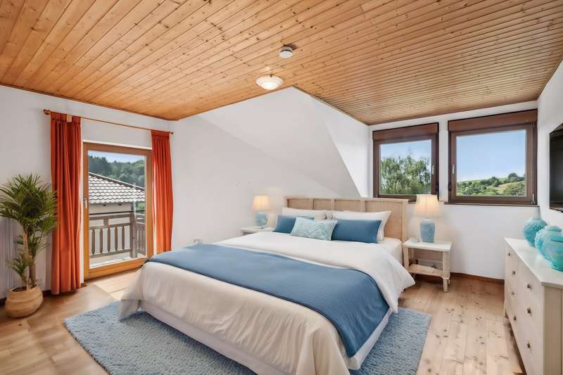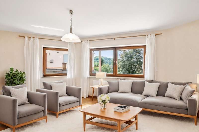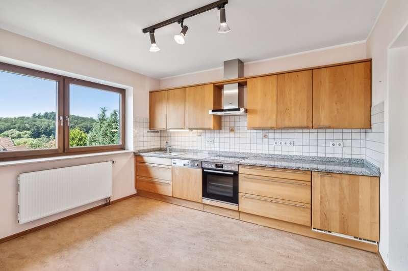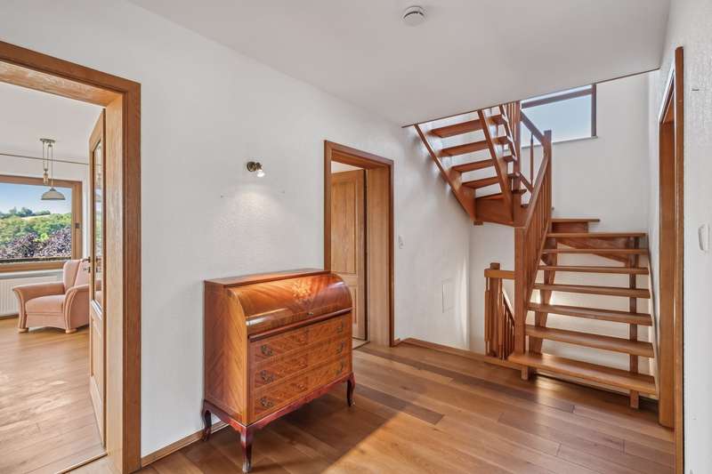 VON POLL IMMOBILIEN Zweibrücken presents you this well-kept house in a traffic-calmed location in Dietrichingen. the generous amount of space, the possibility of a separate granny apartment, the use of high-quality building materials, a large garden and a wonderful view are just some of the highlights that speak for this property. The owners placed particular emphasis on the building's ecological compatibility. Numerous solutions were implemented with care and great attention to detail - for example, specially shielded electrical cables were used on the first floor. The sleeping area on the top floor can be completely de-energized via switching relays. Washed wool and hemp were used for the roof insulation. A special descaling system reduces limescale deposits without removing important minerals from the drinking water, and much more. Wooden windows and real wood floors blend harmoniously into the overall concept and create a very special living atmosphere. On the first floor is the living area with a spacious living and dining room and access to the balcony. Thanks to the large sliding glass door, life inside and outside can be combined almost seamlessly on nice days. The directly adjoining kitchen has a separate pantry and enough space for an additional dining area. The rooms are complemented by a spacious bathroom and an office or bedroom, which makes it possible to live on one level in old age. A solid wooden staircase leads to the top floor with three bedrooms, some with access to the balcony, and a further bathroom. A small storage room and the attic offer generous storage space. The basement has been partially converted. Three rooms on the long and gable side with regular windows can be used as a kitchen, living room and bedroom, making it conceivable for use as a granny apartment. There is also separate access to the garden side and a bathroom with shower. An oil central heating system with solar support is installed. The boiler room and the tank store are located under the double garage and also serve as storage space for numerous garden tools. See for yourself and arrange a personal viewing appointment now. We will be happy to send you the detailed exposé with further photos, the floor plans and the exact address by e-mail or answer initial questions in advance by telephone.