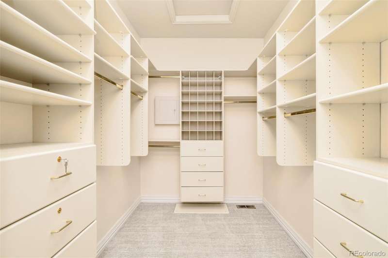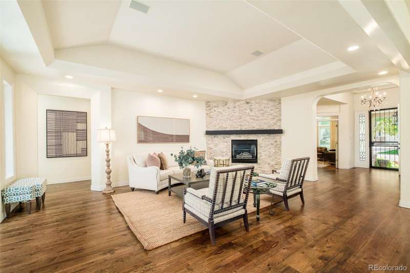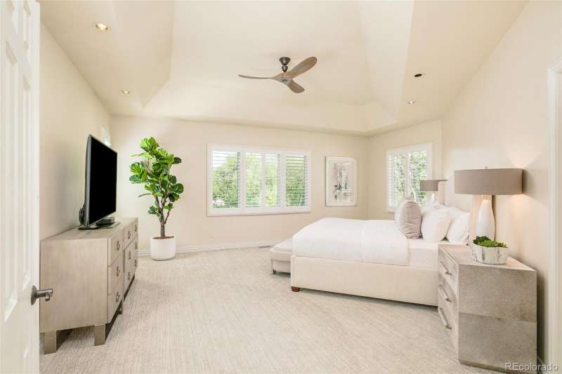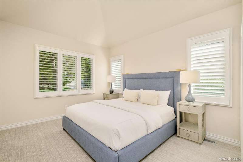 Welcome to 19 Blue Heron Drive, a rare opportunity to enjoy serene privacy and luxury main-floor living with breathtaking views backing directly to the Highline Canal. This 6-bedroom, 5-bathroom home is designed for comfort, elegance, and effortless entertaining.The main level is open and inviting, featuring a dedicated office, formal dining room, spacious living and family rooms, and a well-appointed kitchen with easy flow to the expansive upper deck - perfect for relaxing or hosting while overlooking the canal. A main-level guest suite provides convenience, while the highlight is the stunning primary suite with walls of windows framing the natural landscape. The spa-like primary bath boasts dual vanities, walk-in shower, and two private water closets. A massive walk-in closet with custom built-ins connects directly to a versatile bonus room ideal for a home gym, craft room, bedroom or second office. The main level is completed by a laundry room and abundant storage.The fully finished basement offers endless possibilities for entertaining with a spacious family room, access to the lower patio, and a beautifully designed bar. A second primary suite with sitting area, oversized walk-in closet, and luxurious bath creates a private retreat, while two additional bedrooms with a shared bath provide comfortable accommodations for family or guests.Located in the sought-after Bateleur community, this updated home combines timeless elegance with modern functionality, all set against the peaceful backdrop of the Highline Canal. Dont miss your chance to own this one-of-a-kind retreat in Greenwood Village.