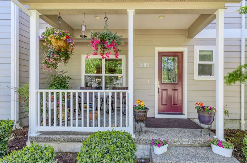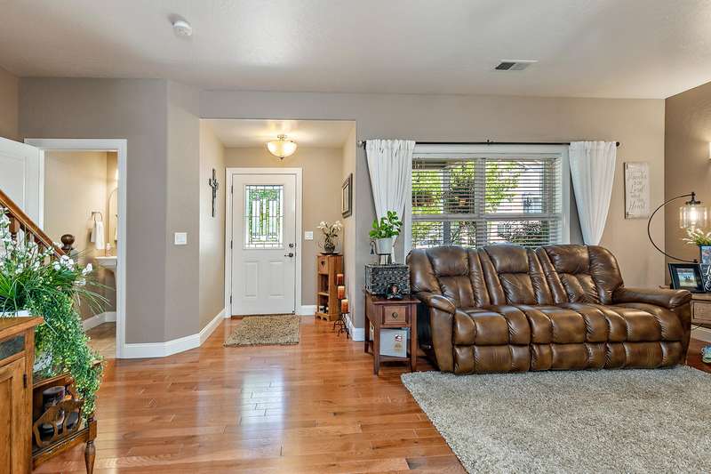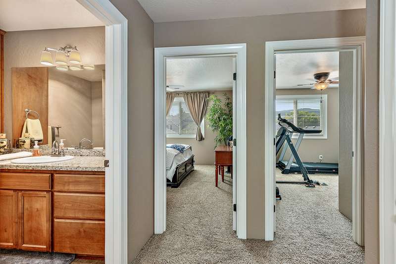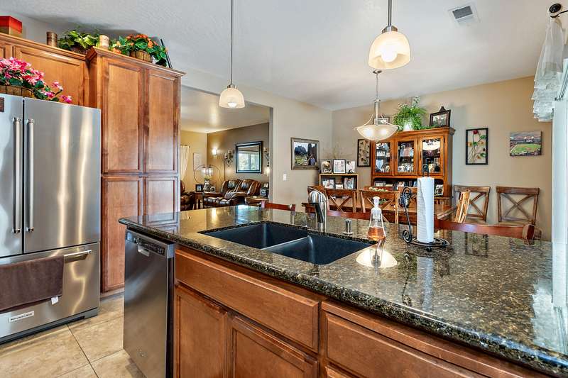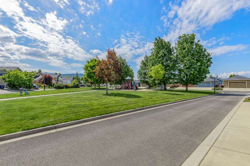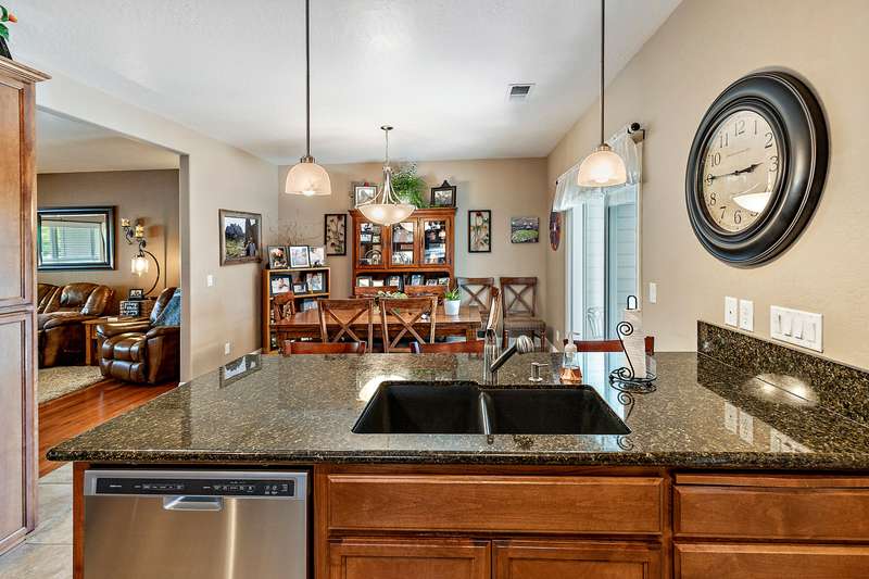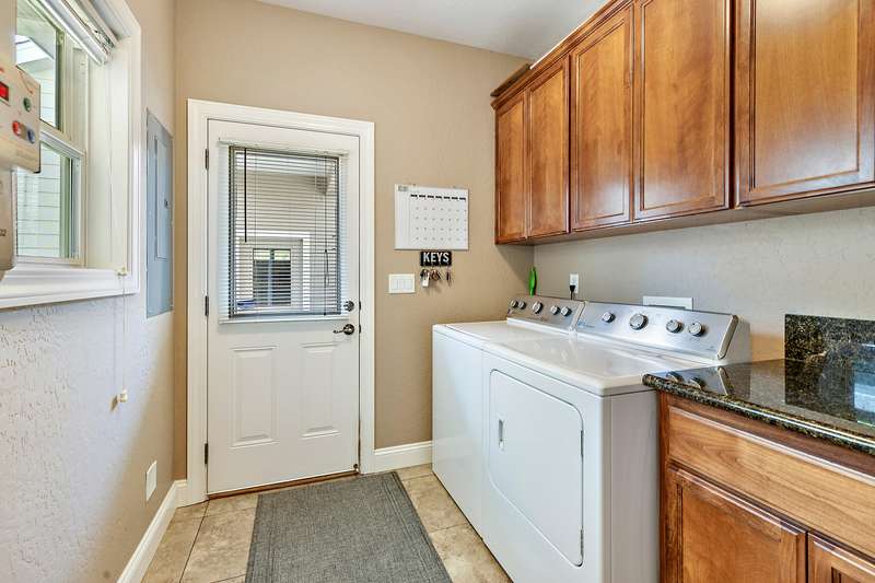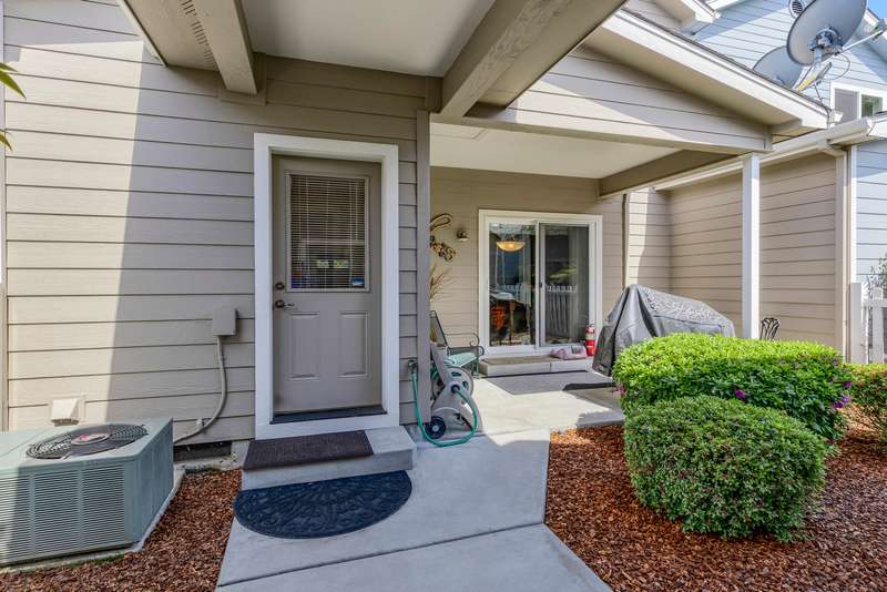 Well maintained, move-in ready townhome in Twin Creeks Development. Spacious 1,585' 3/2.5 floor plan with desirable pocket park location. Backed by Griffin Oaks Park & near Twin Creeks Park this wonderful home offers traditional charm w/modern comforts throughout. Welcome friends & family to a delightful home w/open main level living areas, kitchen w/breakfast bar, granite counters, rich tile & wood floors, built-in pantry, dining area w/covered patio access, plenty of storage spaces, large utility room w/counter, built-in cabinets, tank-less hot water unit, & access to a breezeway, backyard & oversized finished 2 car garage w/finished floor. Enjoy watching the sunrise & the expansive views from the private upper level master suite or the glow of the setting sun on the surrounding mountains from the two guest bedrooms. The beautiful yard is maintained by an assoc. You will love the location, style, & quality construction! Common wall is 11in thick ICF wall w/6in of poured concrete.