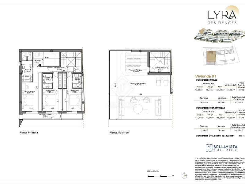 Step inside this cozy villa and you'll find a welcoming entrance hall leading to a versatile room perfect for a home office or guest suite, complete with its own bathroom. The main living area is an open space where the kitchen, dining, and living room come together, making family time and entertaining easy. Large doors open onto the porch, connecting you to the garden for outdoor enjoyment. Downstairs, there's a spacious room that can be used for various activities, along with a garage for parking. Upstairs, retreat to the bedrooms, including a master suite with its own dressing area, and each bedroom has its own bathroom for privacy. On the top floor, you'll find a solarium with both covered and open terrace areas, perfect for relaxing or hosting gatherings. Located in a secure community, this villa offers peace of mind for family living. Designed with both practicality and comfort in mind, this villa has everything a family needs for everyday living and special occasions.