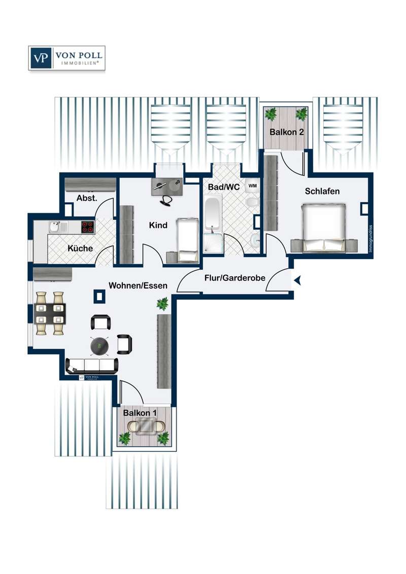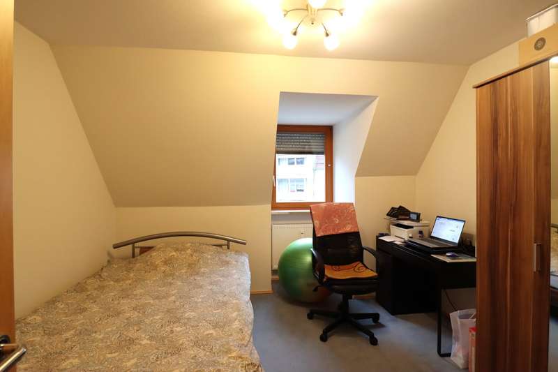 This well-kept and light-flooded 3-room apartment is located on the top floor of an apartment building built in 1995 with a total of 16 parties. You enter your apartment via the staircase. It is not only in a well-kept condition, but also has a well thought-out room layout. From the hallway, you enter the cozy bedroom with balcony and the adjoining bathroom. The bathroom is equipped with a bathtub, a shower, a toilet, a washbasin and a practical washing machine connection. At the end of the hallway, you enter the bright living room with parquet flooring, which also offers access to another balcony. Here you have enough space to create a living and dining area. From the living room you have access to the children's room/study and the kitchen. This is equipped with a well-maintained fitted kitchen including electrical appliances, which is already included in the purchase price. Adjacent to the kitchen is a practical pantry. The apartment is complemented by a storage room in the attic and a separate underground parking space (separate property). There is also a communal bicycle storage room and a drying room on the first floor of the building. The apartment has been rented to a reliable tenant since 2013.