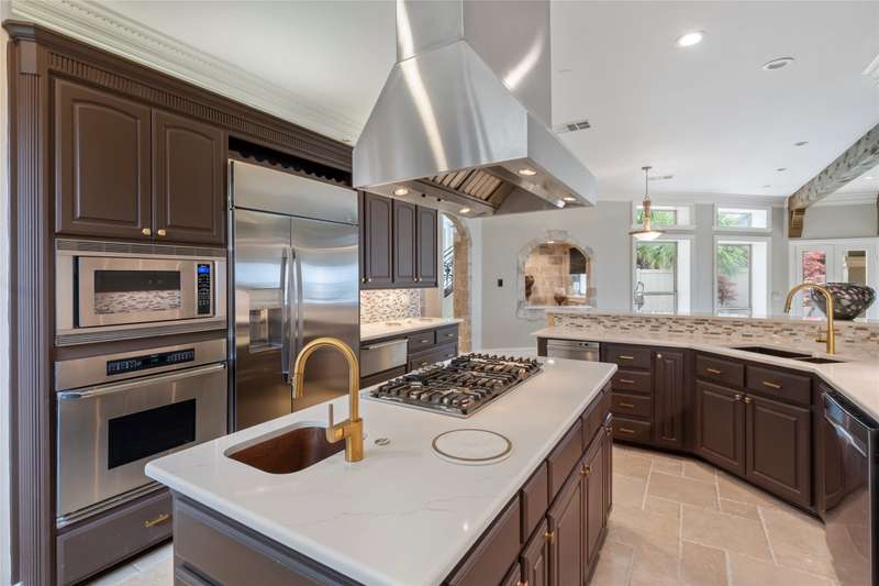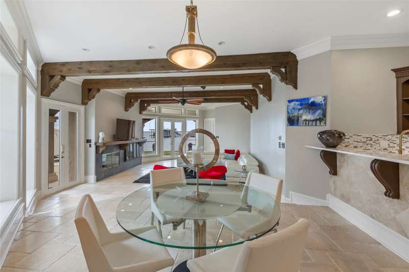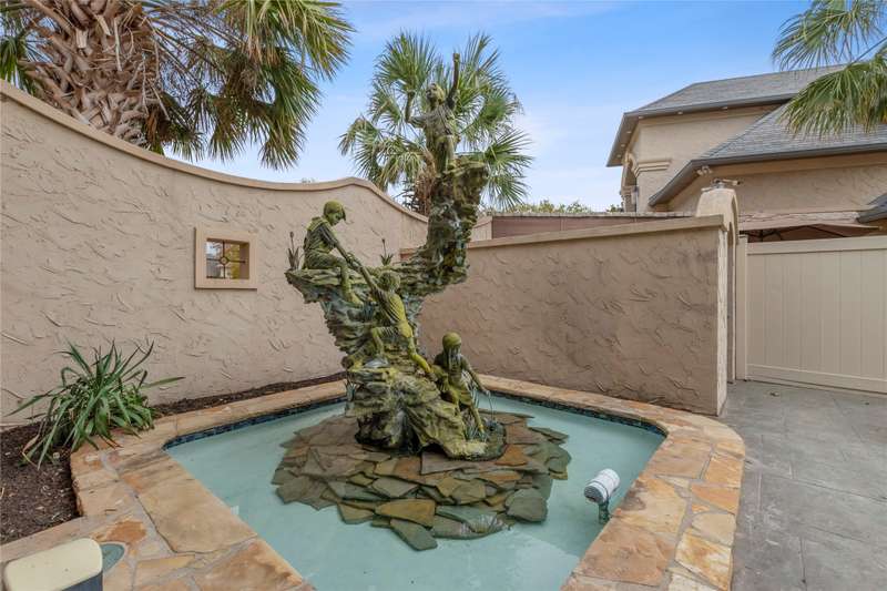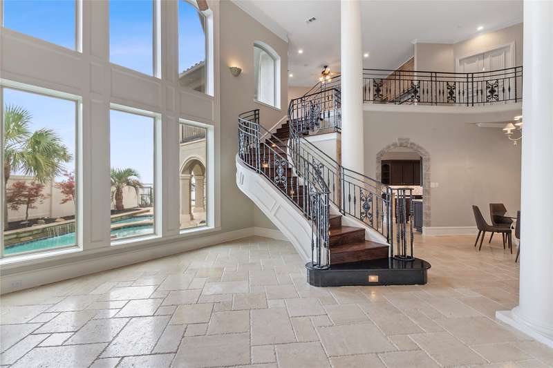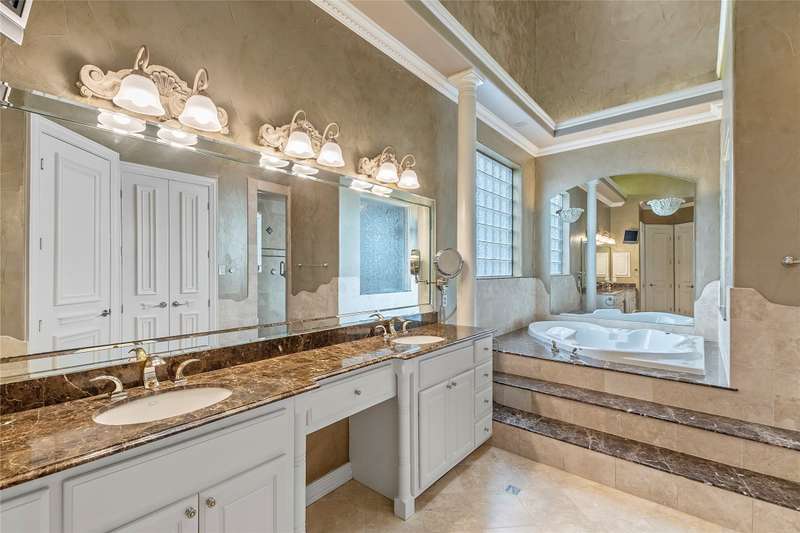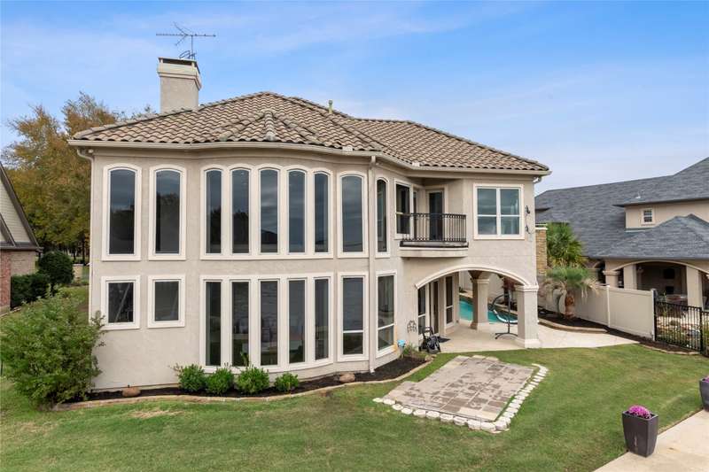 Beautiful Florida style Mediterranean home with poolside courtyard, hot tub and exquisite water fountain. This 4811 sq ft home offers formal dining and breakfast rooms, 2 living areas plus game room, 2 wet bars, media room and 4 ensuite bedrooms of which 2 have gas fireplaces. Upon entering the home you are greeted with windows up to a soaring ceiling and striking staircase then walk through the formal dining to the more casual family room with open concept kitchen and breakfast area. Main floor waterside primar and prep sink. Tankless water heater. Lovely drive up with private gated entry and luscious landscaping. Oversized 3 car garage. Concrete tile roof. First home on cove just off open water with fabulous views. Located in Pinnacle Club with golf course, restaurant, pool, exercise room, tennis, pickle ball.