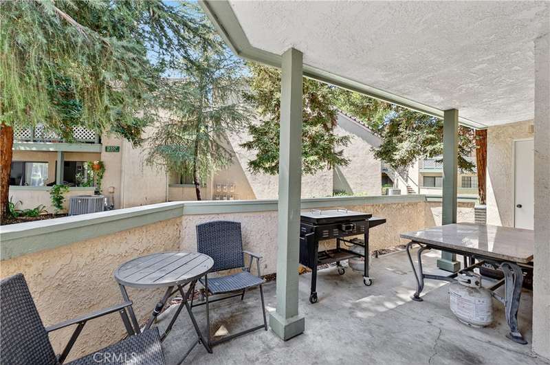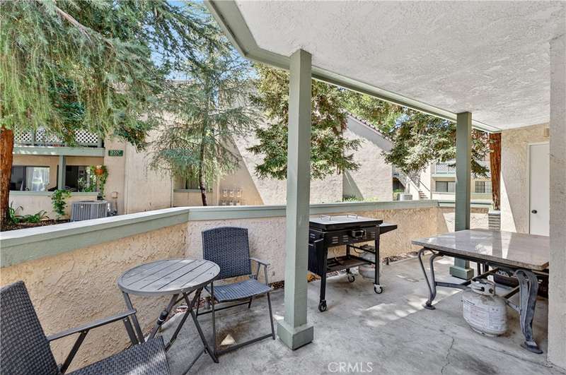 The updated kitchen is a chef's dream, complete with ample cabinetry, a breakfast bar, and seamless flow into the dining and living areas. The primary suite is a true retreat, offering a walk-in closet, full bathroom, and its own private patio for quiet relaxation. The second bedroom is generously sized and easily accessible to the guest full bathroom, making it perfect for family or guests.