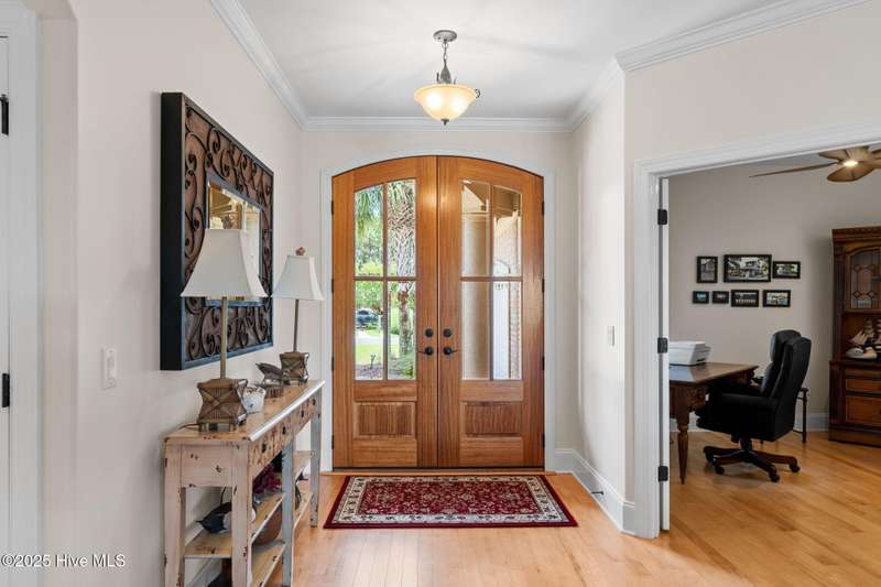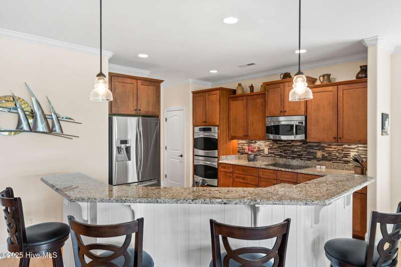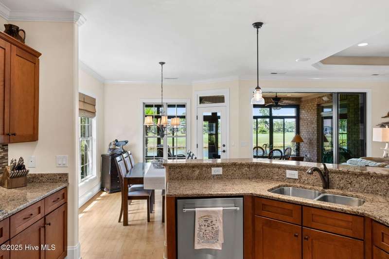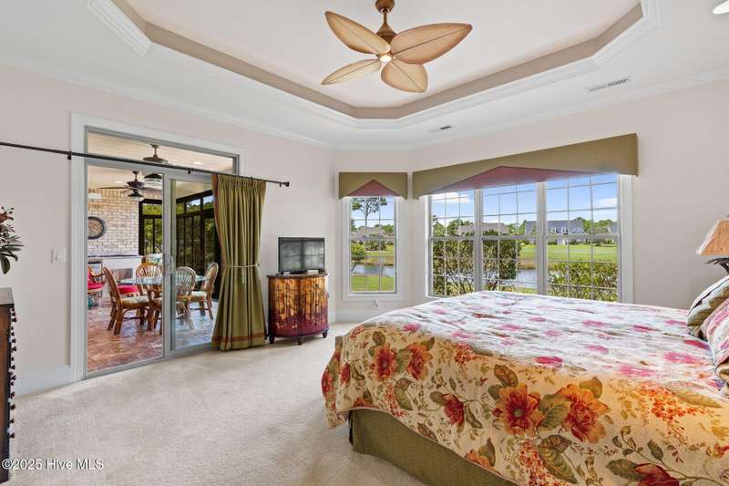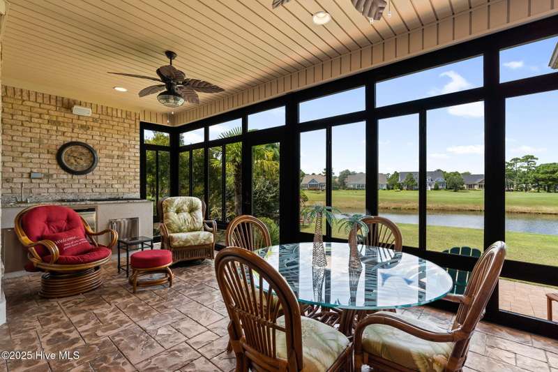 When only the finest will do! This spectacular former Logan model home is the epitome of luxury coastal living—offered fully furnished and move-in ready! From the moment you step inside, you'll be captivated by the open-concept layout and a dramatic wall of windows framing panoramic views of a sparkling pond and the 9th hole of the Cate course at the Members Club. It is a view you must see! Designed with thoughtful upgrades throughout, this home features gleaming hardwood floors, oversized tile in the bathrooms, custom closets with wood shelving, abundant storage, and an extensive trim and molding package. The chef's kitchen is both beautiful and functional, boasting double ovens, a decorative tile backsplash, soft-close drawers, and stainless steel appliances. The spacious primary suite is your private retreat, complete with a spa-inspired bath featuring a jetted tub, dual shower heads, and double vanities. Upstairs, guests or family members will enjoy their own space with a generously sized bedroom/flex room and full bath. Love to entertain? The bright sunroom opens to a fully equipped outdoor kitchen with granite countertops, built-in grill, wet bar, and refrigerator—perfect for gatherings with a view. The oversized two-car garage includes a finished interior, epoxy floor, and climate-controlled workshop. Situated in one of the best locations in St. James Plantation, you're just a short walk from the Members Club Athletic Center and Woodlands Park. This home truly offers some of the most breathtaking pond and golf course views in the entire community. Why wait to build when you can have it all—right now? Enjoy the unmatched lifestyle of St. James with 81 holes of championship golf, indoor and outdoor pools, tennis, pickleball, fitness centers, miles of trails, restaurants, dog parks, a full-service marina, kayak launch, fishing lakes, amphitheater, tiki bars, and a private oceanfront beach club. Buy now, and start living the good life