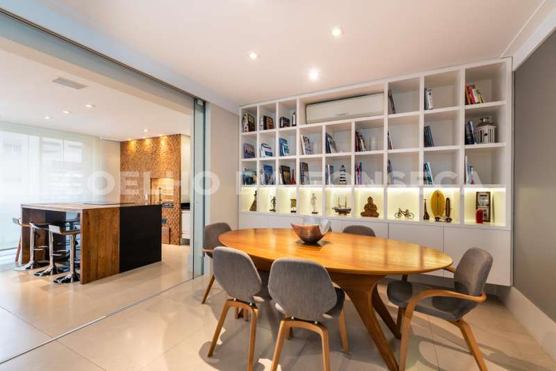 * Living e sala de jantar integrados ao terraço gourmet