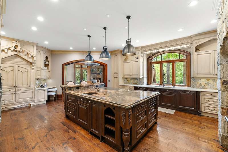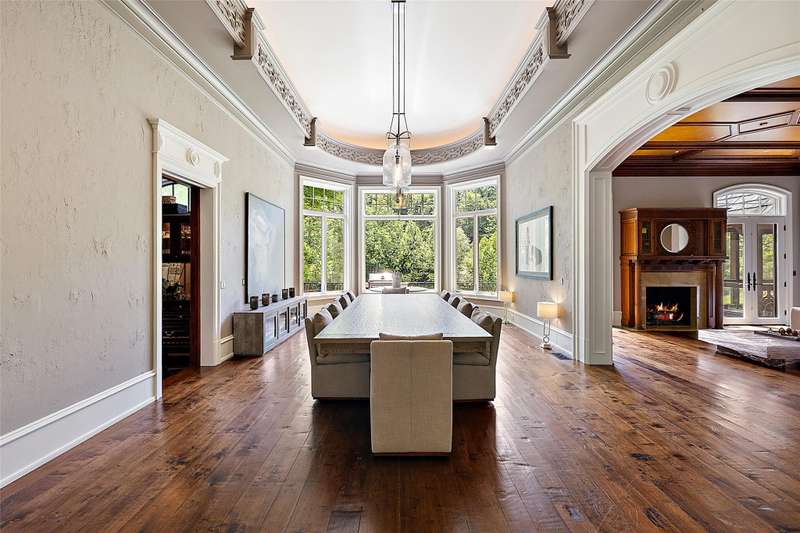 Experience luxury living at this private estate nestled along the Franklin Branch of the Rouge River. Offering over 16,000 square feet of beautifully crafted living space. Nestled on more than 10 serene acres, this property is defined by its tranquil natural surroundings, with the river gracefully winding throughout the grounds. Designed with comfort and grand entertaining in mind, the home features many amenities, including a state-of-the-art theater room and a two-story library, complete with a spiral staircase and exceptional millwork. Intricate moldings and custom woodwork are showcased throughout, reflecting superior craftsmanship at every turn. The inviting three-season room provides a peaceful spot to take in the beauty of the property, while the expansive rear patio spans the length of the home, offering panoramic views of the natural landscape. The expansive lower level is an entertainer’s paradise, boasting a huge great room, a fully equipped second kitchen, a custom bar, a stylish powder room, a game room, and a dedicated craft room. An elevator conveniently services all levels of the home. This one-of-a-kind estate offers a rare combination of privacy, elegance, and resort-style amenities in a truly picturesque setting. Recently renovated with fresh paint, new carpeting, and updated decorative features. The space has undergone a transformation.
