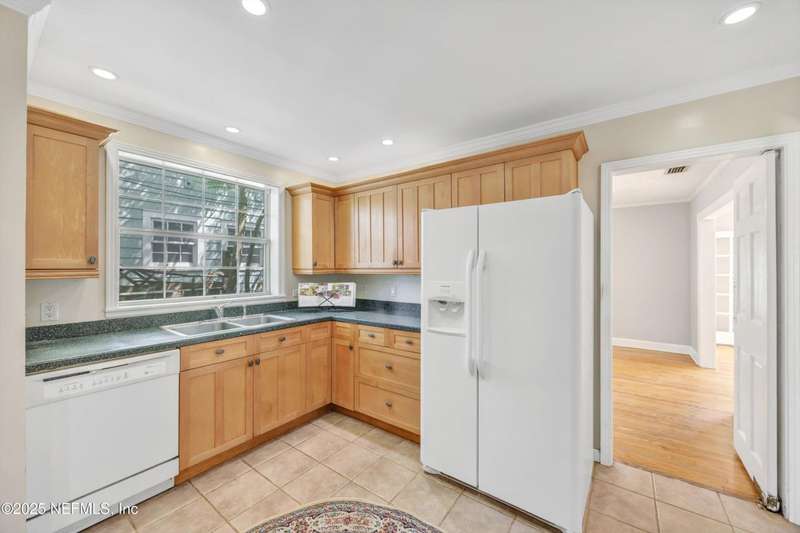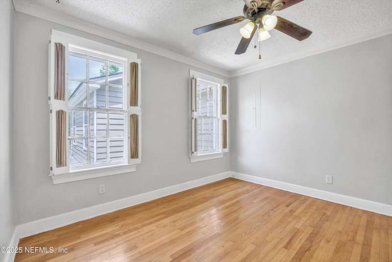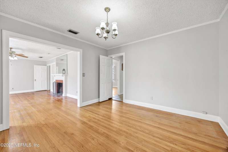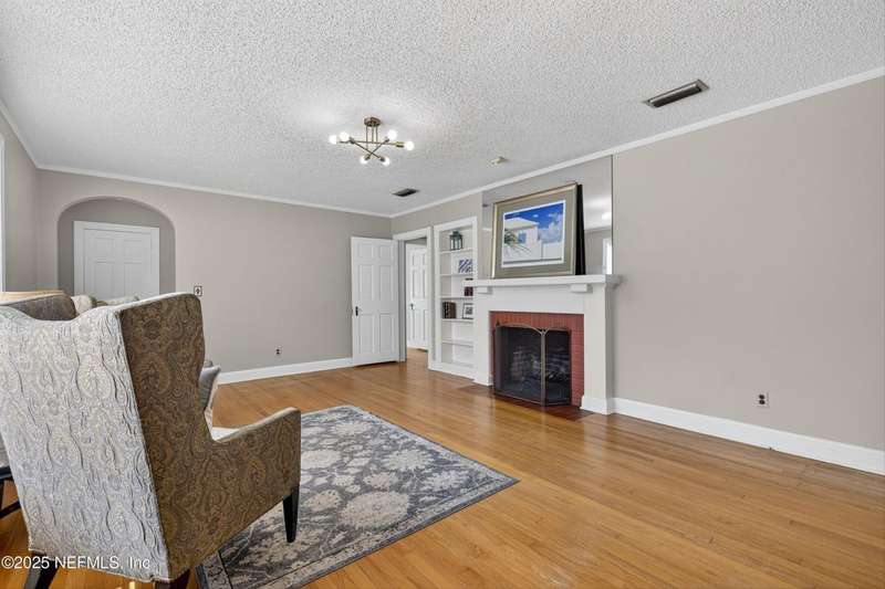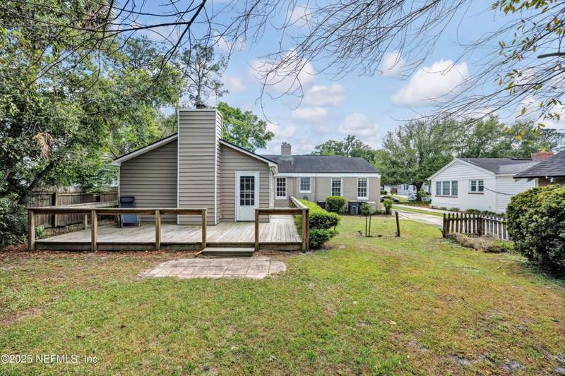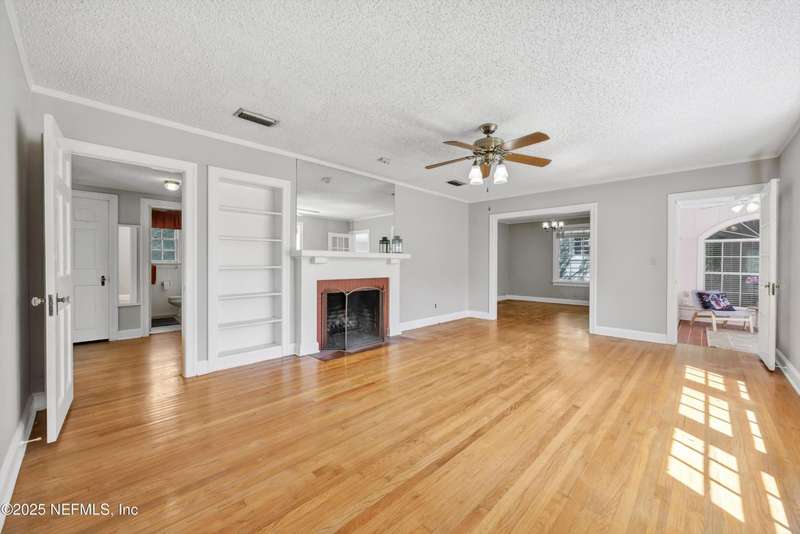 Classic brick 4 bedroom/2 bath home in the San Marco area. Bursting with character and charm, this home offers spacious living areas and timeless appeal. You will love all the natural light throughout and the beautiful wood floors. Living Room features a woodburning fireplace and built-in shelving. A separate formal Dining Room flows seamlessly into the Kitchen, which is well-appointed with Corian countertops, an abundance of cabinetry, a beverage bar with wine rack, and plenty of prep space for your culinary adventures. Rest and relax in the spacious Primary Suite, your personal haven complete with its own fireplace. The walk-in closet and large shower are dreamy. In the morning enjoy coffee on the large wrap around deck. Three bedrooms offer room for guests & family. The tiled Sun Room is perfect for an office or playroom. Shady backyard. The Inside Laundry Room offers extra convenience. The location is FABULOUS. Walk to Hendrick Ave School. Bike into San Marco Square.