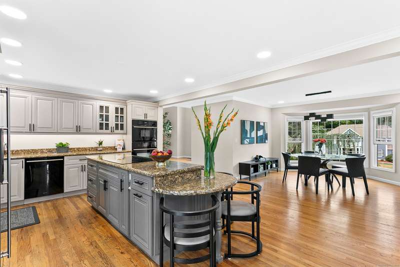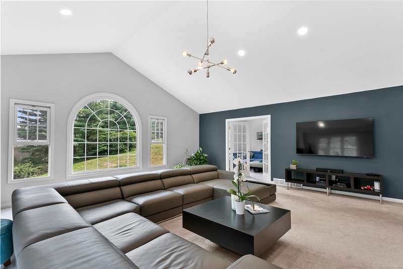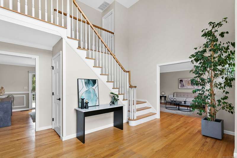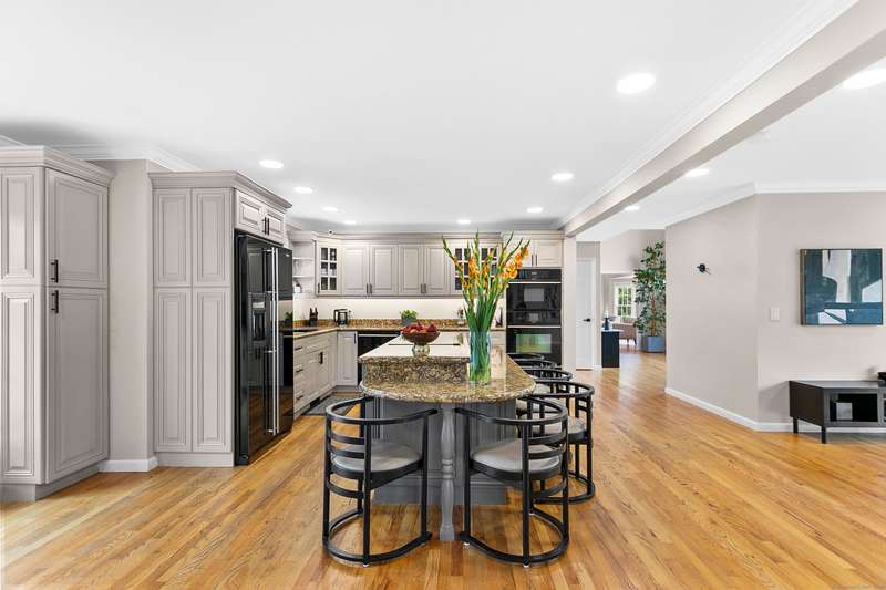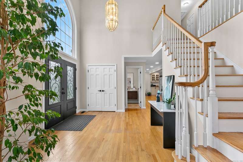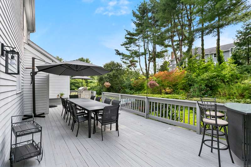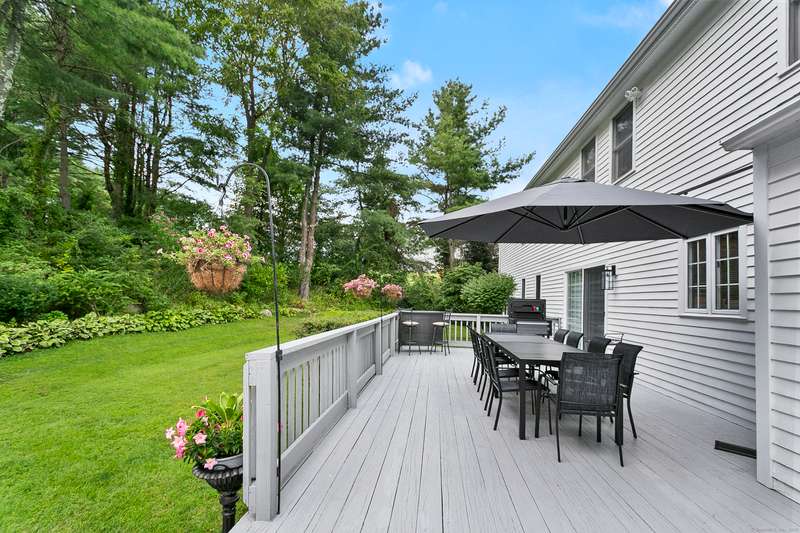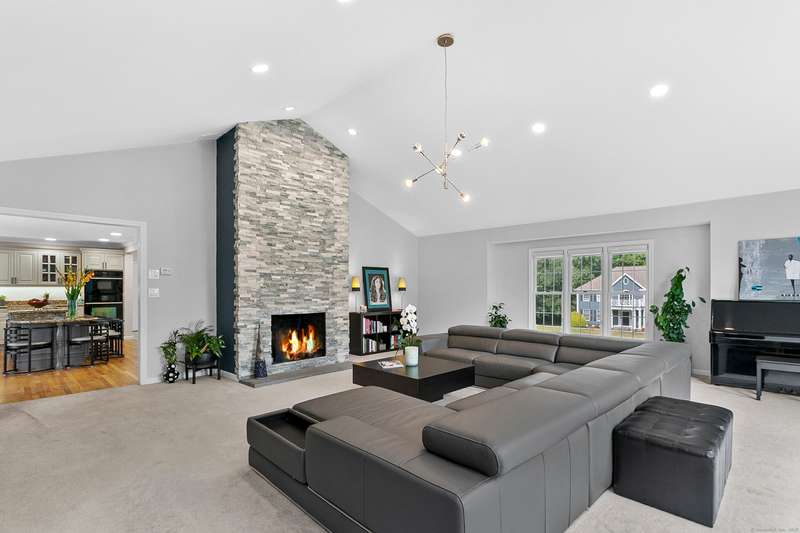 Welcome to a gracious 4,287-sq-ft, 5-bed, 4.5-bath home designed for hosting and everyday ease-set on a private 1-acre lot in Trumbull, tucked away yet 3 minutes to Rt. 25 and connected to Tashua School (K-5), with gas heat and potential space for a future pool. The heart of the home is a massive, chef-ready kitchen with counter bar, cafe bar, twin ovens, and a sunny breakfast nook. It flows and connects to a spacious dining room and out to a rear deck and fire-pit patio-seamless indoor-outdoor entertaining. A secondary pantry doubles as a smart laundry/utility zone to keep cleanup out of sight. An oversized powder room and a welcoming foyer-overlooked by a balcony and statement chandelier-complete the arrival experience. A huge family room with fireplace opens to a large sunroom/office for comfortable living. The first-floor guest suite offers privacy with an en-suite bath and dedicated storage. Upstairs, the vaulted-ceiling primary suite features a bath with dual vanities and a jette