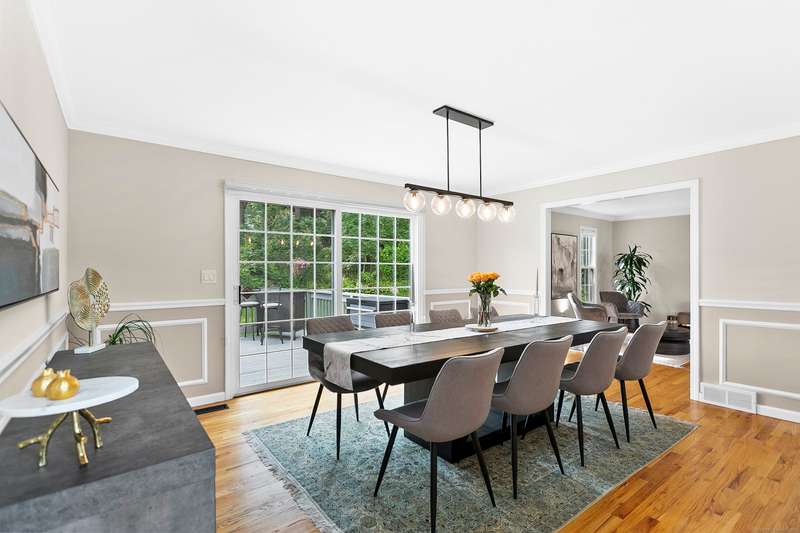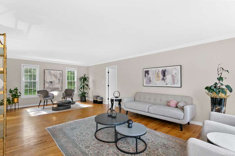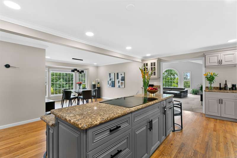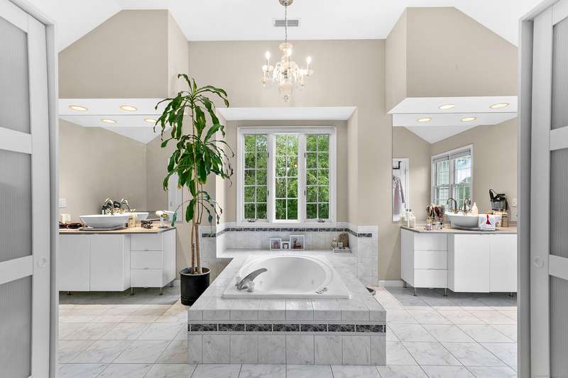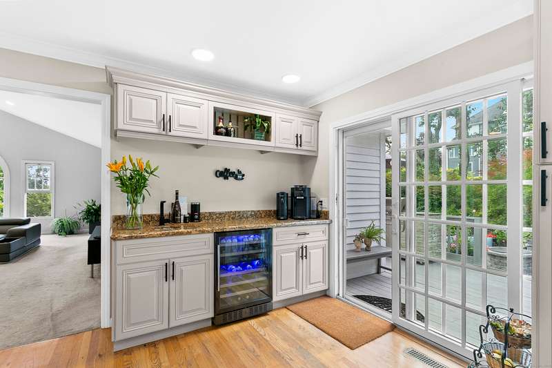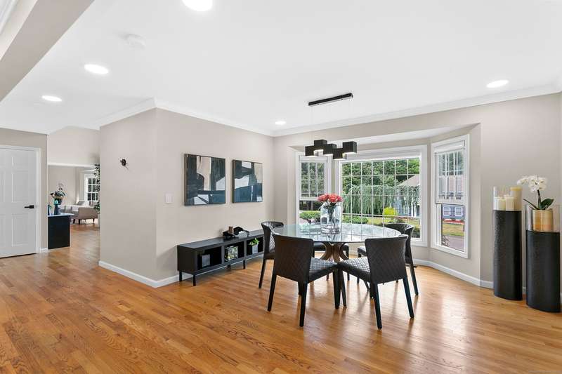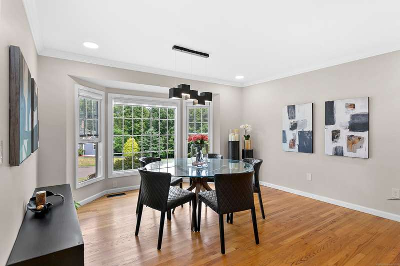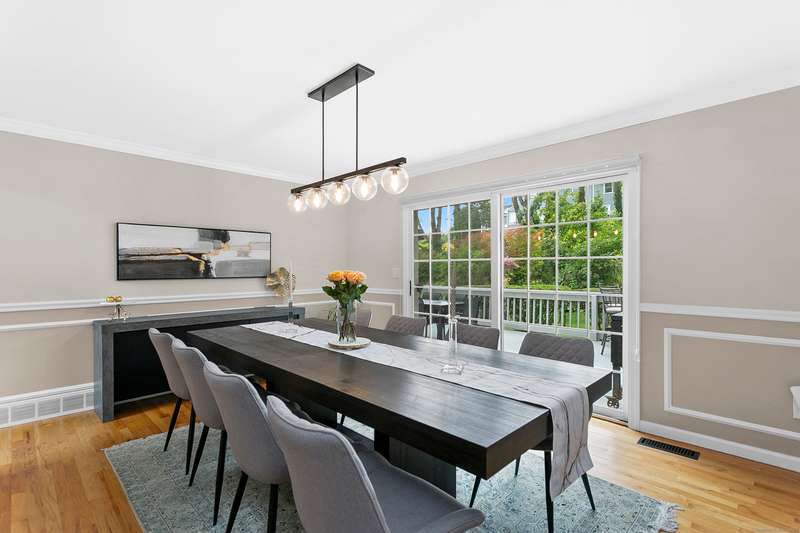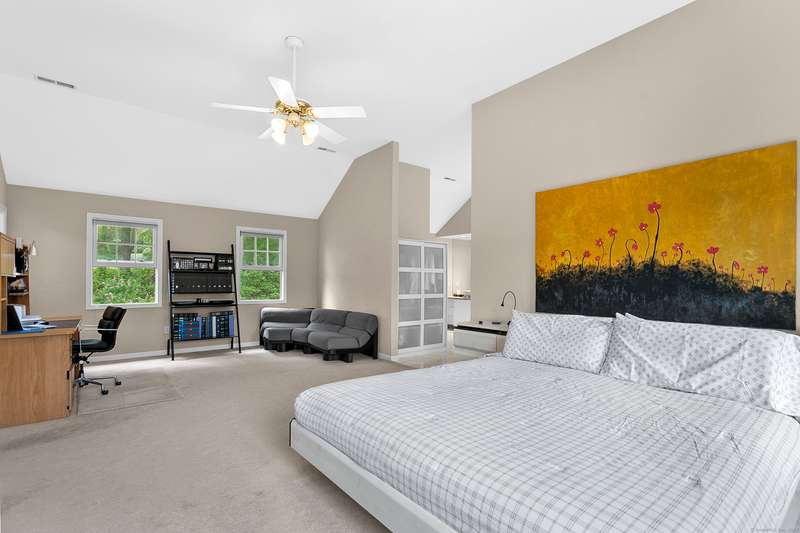 Welcome to a gracious 4,287-sq-ft, 5-bed, 4.5-bath home designed for hosting and everyday ease-set on a private 1-acre lot in Trumbull, tucked away yet 3 minutes to Rt. 25 and connected to Tashua School (K-5), with gas heat and potential space for a future pool. The heart of the home is a massive, chef-ready kitchen with counter bar, cafe bar, twin ovens, and a sunny breakfast nook. It flows and connects to a spacious dining room and out to a rear deck and fire-pit patio-seamless indoor-outdoor entertaining. A secondary pantry doubles as a smart laundry/utility zone to keep cleanup out of sight. An oversized powder room and a welcoming foyer-overlooked by a balcony and statement chandelier-complete the arrival experience. A huge family room with fireplace opens to a large sunroom/office for comfortable living. The first-floor guest suite offers privacy with an en-suite bath and dedicated storage. Upstairs, the vaulted-ceiling primary suite features a bath with dual vanities and a jette