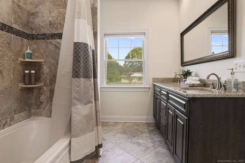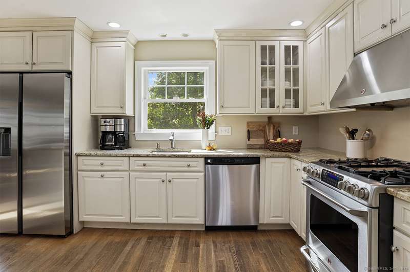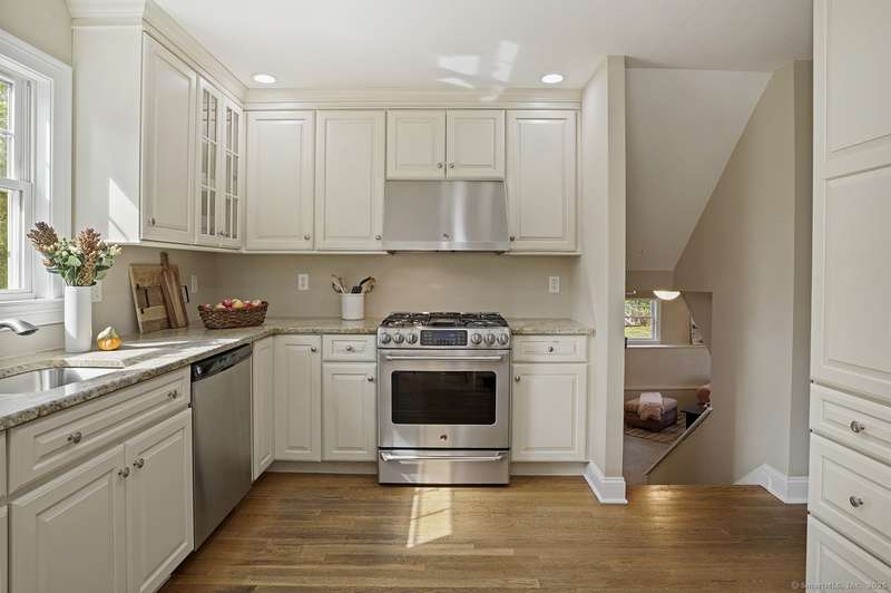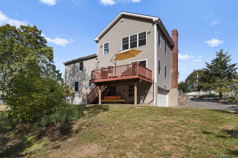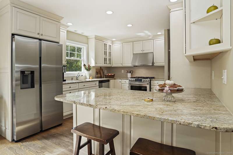Filled with charm and curb appeal, this inviting 4-BR Colonial Split is perfectly sited on a quiet cul-de-sac just moments from Lake Mohegan's trails, playground, and beach. Original home was completely redesigned and expanded in 2010! A pretty front porch welcomes you home and sets the tone for the relaxed and comfortable vibe inside. Open main level features a spacious living room anchored by a wood burning fireplace and hardwood floors. Updated kitchen has plenty of granite counter space and ss appliances, plus counter seating. The dining area looks out the sliders to the sunny back deck and the private backyard beyond. In the lower level, the rec room is the perfect spot for movie nights or playtime. An adjacent office and full bath make this space a fantastic option for guest stays. Upstairs, you'll find three bright and spacious bedrooms and an updated full bath. A few steps up, the fabulous primary suite feels like a retreat, offering a cathedral ceiling, sitting area with gorge