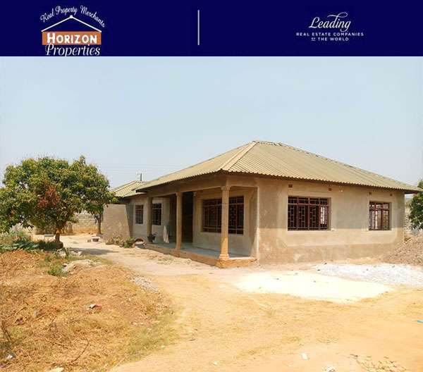 2×3-bedroom incomplete flats sitting on a 28×18 plot, located about 900 meters from the tarmac.