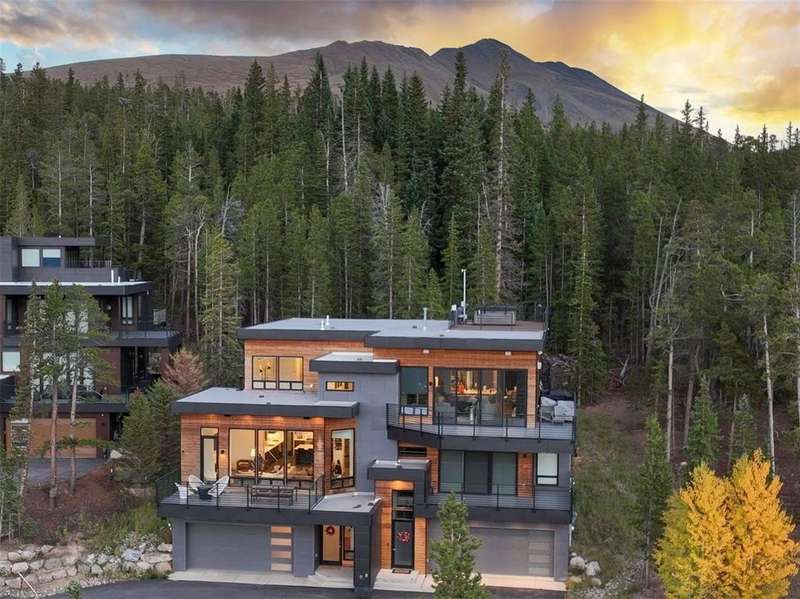 Mountain modern masterpiece combining a mid-century aesthetic with a western sensibility. This impeccably curated property lives like a single-family residence offering over 3,190 square feet of luxury living space plus a 775-square-foot heated 2+ car garage with two owner’s closets. Built with ultra-efficient ICF exterior construction, the home maintains remarkable comfort year-round, with radiant heating across seven zones and a snowmelt system at the entry and apron. The main level features soaring 13’ ceilings, Sierra Pacific windows and doors, and seamless access to expansive elevated decks for indoor-outdoor living, with unparalleled views of the entire Ten Mile Range. A Morning Star elevator provides convenience across all levels, while custom Lutek roller shades—motorized in primary living spaces—deliver privacy and style. Flexible spaces allows the home to adapt to every need: a media room doubles as a bedroom with queen and Murphy bunk sleeping for four, while an office can easily flex to a fifth bedroom. The primary suite impresses with dramatic ceilings, a spa-like bath, private deck, and adjacent laundry. The chef’s kitchen is outfitted with Thermador and Jenn-Air appliances, dual beverage coolers, and sleek modern finishes. Entertainment and technology are second to none with a Savant smart system controlling lighting, shades, audio, A/V, Wi-Fi, garage, and front door—whether at home or remotely. Multiple TVs, KEF speakers, Dolby Atmos surround, and whole-home audio (indoor and outdoor) are all included. Outdoor adventure begins just beyond the patio, with backcountry skiing, snowshoeing, mountain biking and hiking access to Baldy, Australia Gulch, Sister’s Cabin, and Sally Barber. Snow removal is prepaid through April 2026, and infrastructure is already in place for a future hot tub or additional rooftop deck. This Architect/Designer owned home is offered with all installed appliances, Savant equipment, Murphy beds, and more.