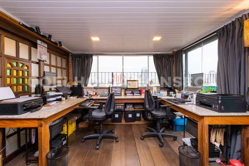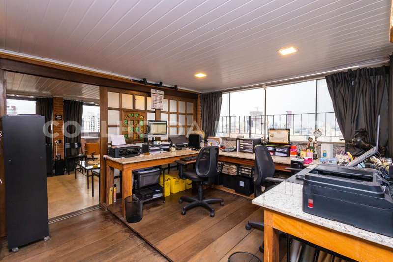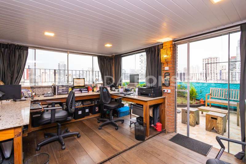 Sala com janelões e vista definitiva, Cobertura com ambientes bastante iluminado, ventilado e bem amplos, planta quadrada, que possibilita vários tipos de decoração. No piso inferior um apartamento excelente! Na parte superior ,a cereja do bolo, o que era um terraço aberto, parte foi fechada, onde foi feito escritório, sala, cozinha de apoio. Além disso existe de dois terraços onde você pode desfrutar com amigos ou familiares.Em um desses terraços, parte dele foi coberta e colocado redes para seu repouso. O terraço têm churrasqueira. O apartamento conta ainda com 3 vagas de garagem, muito faceis de estacionar, todas cobertas. A garagem é em um espaço particular que se pode fazer ainda uma pequena " oficina". confira e adquira tudo o que te faz morar bem!