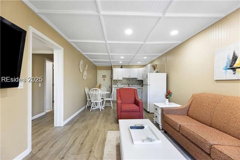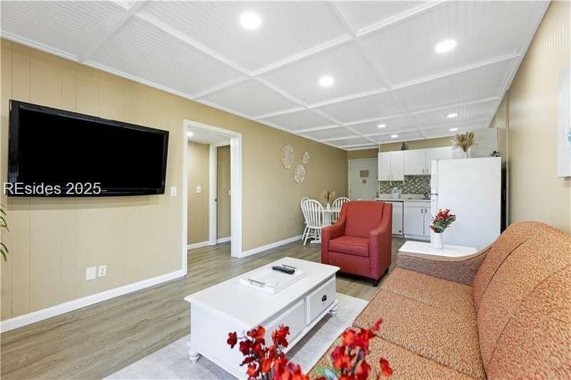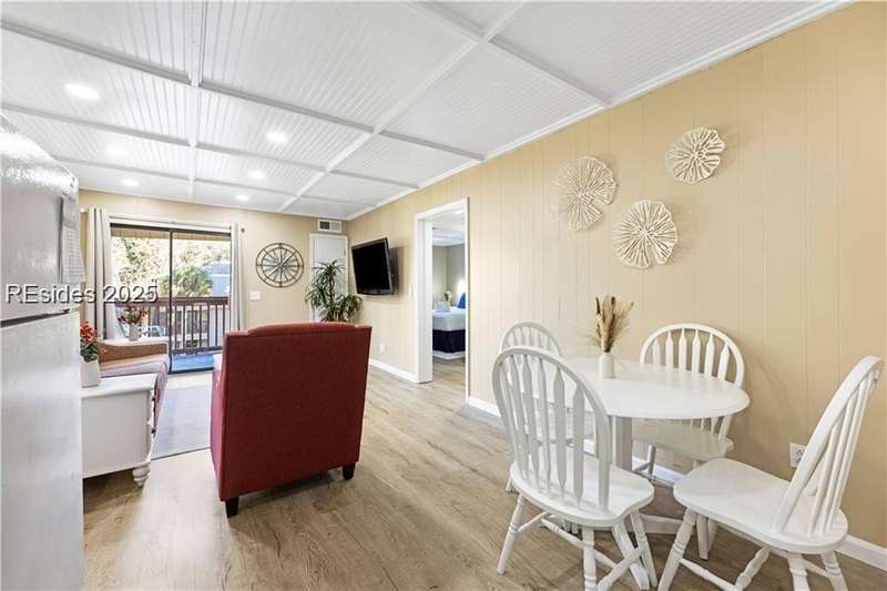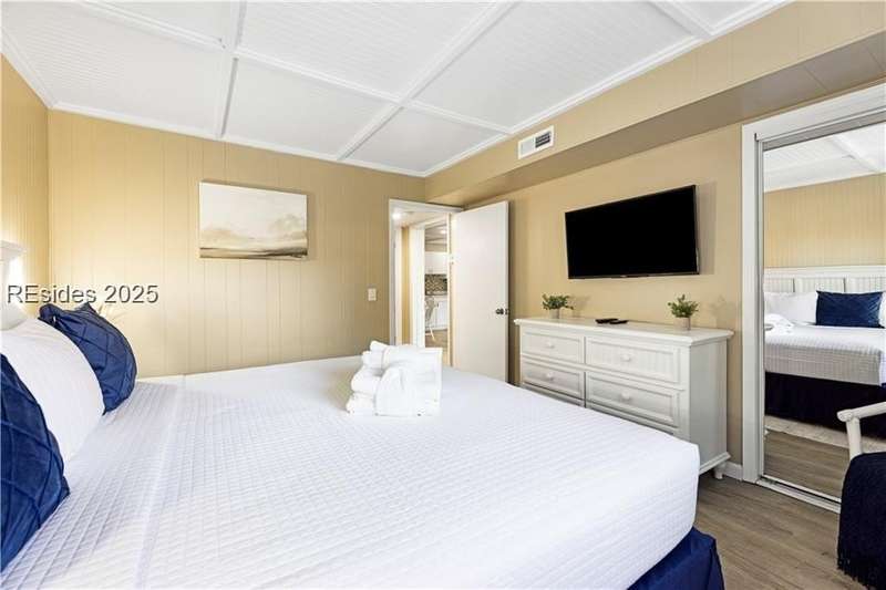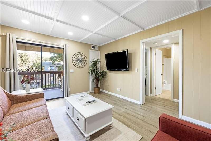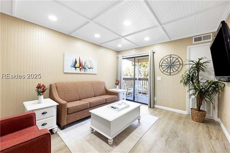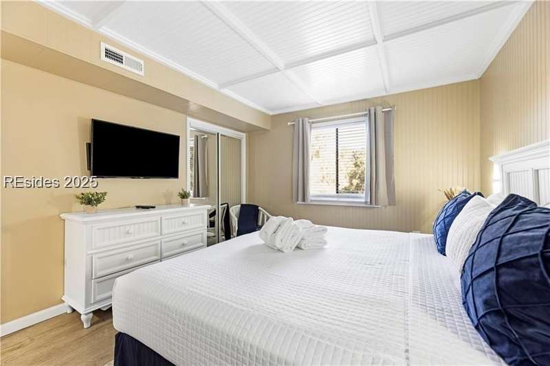 Take a peak at this beach-close luxury 2-bed / 2-bath Sands Villa. Located on the top floor with beautiful views out over the immaculate grounds and pool area of Sands Village. This peak of perfection features new flooring, new interior paint, new furnishings & accessories, new flat-screen TV's, new appliances, Coffered Ceilings, raised-panel walls, etc. It is in turn-key condition and could be a rental machine. Just a few steps to the beach, Coligny Plaza, Celebration Park, tons of shops, multiple restaurants, beachside bars and entertainment. Sands Village is a quiet and peaceful setting with a community pool and grilling area.