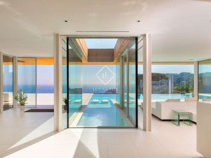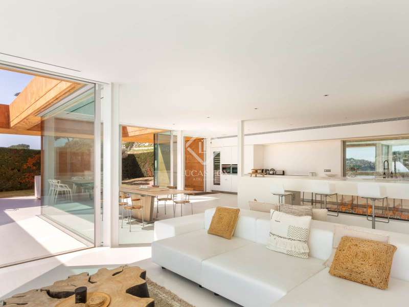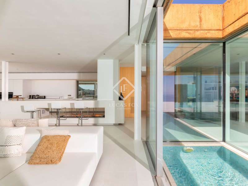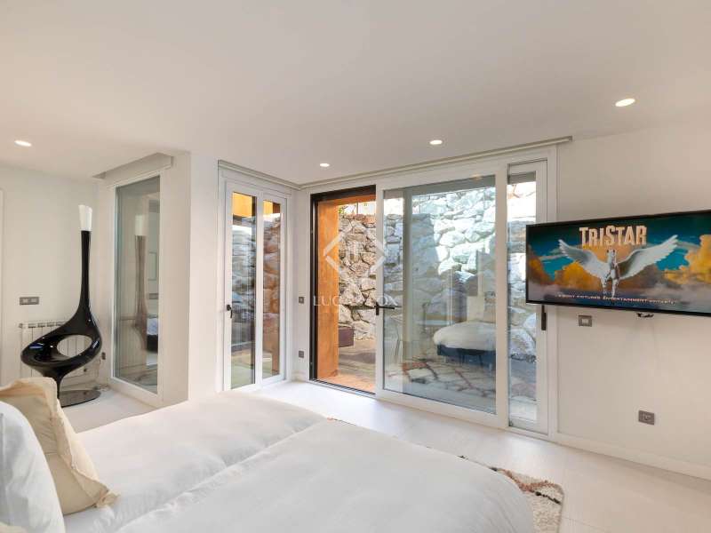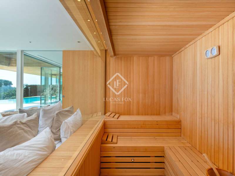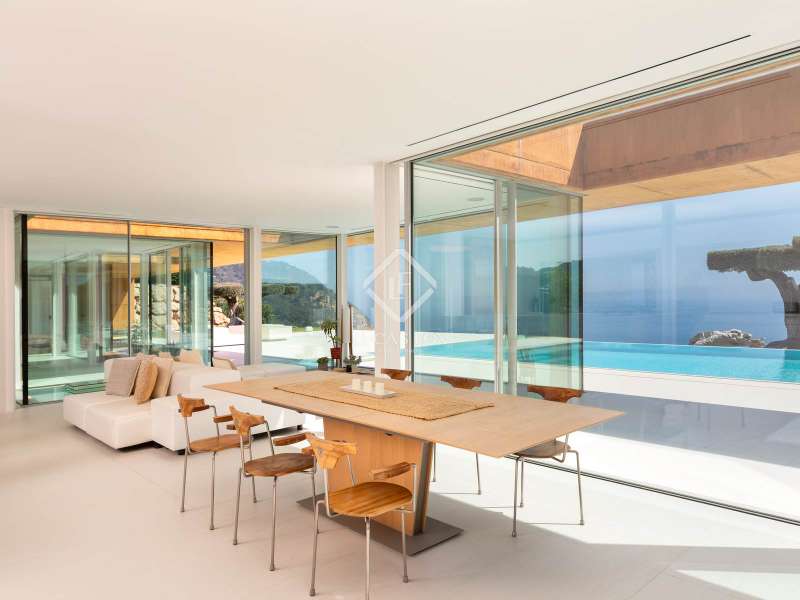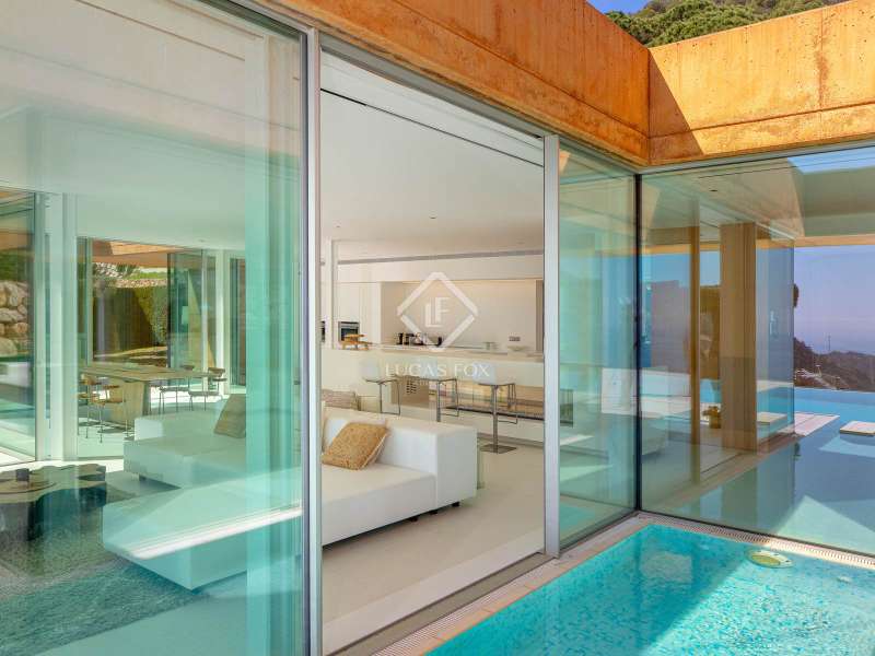 This exquisite 4-bedroom villa enjoys a prime location within one of the most exclusive private residential complexes in Begur and on the Costa Brava, just a short 5-minute drive from the heart of Begur. Offering top-tier security, concierge services, and private access for residents, this home provides both privacy and luxury. Originally built in 2012, the villa was fully renovated only few years ago to an impeccable standard with an unique design. The villa spans two levels, showcasing breathtaking panoramic views of the bay, coastline and the mountains. Designed with open-plan living in mind, the property features expansive floor-to-ceiling glass walls and sliding windows, that frame the spectacular scenery and fill every space with natural light. The main living area is both stylish and inviting, comprising a spacious lounge with a modern gas fireplace, a refined dining area, and a contemporary kitchen equipped with premium appliances and a sleek breakfast bar. Also on this level, we find a second lounge with a television, as well as the luxurious main suite, complete with a private shower, sauna, and uninterrupted sea views. The lower floor is dedicated to relaxation, housing three additional en-suite bedrooms, all with direct terrace access, along with a guest bathroom. Outdoors, the beautifully landscaped garden cascades down the hillside, featuring lush terraces that are laid to lawn, ideal for peaceful moments while taking in the mesmerizing views of passing boats. The striking infinity pool flows seamlessly beneath the house, creating a shaded retreat from the summer sun and serving as a unique water feature visible from the living spaces. Every detail of this villa is designed for enjoyment and tranquility. A charming south-facing porch, expansive terrace, barbecue area, and a chic chill-out space make it the perfect setting for embracing the Mediterranean lifestyle, whether sipping cocktails at sunset or dining al fresco with friends and family. Finished to the highest standards, this home boasts top-quality materials and premium features, including a heat pump system, air conditioning, home automation, integrated speakers, an advanced security system with cameras, and a spacious two-car garage with additional outdoor parking. Whether as a primary residence or a luxurious second home, this remarkable property is an outstanding investment opportunity, particularly given the high demand for Aiguablava properties during the summer season. Please contact us for further information.