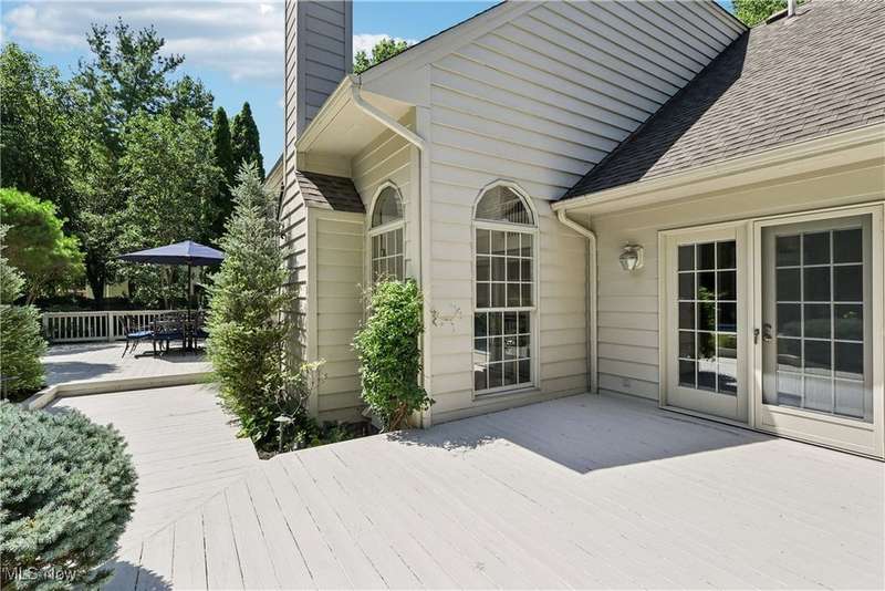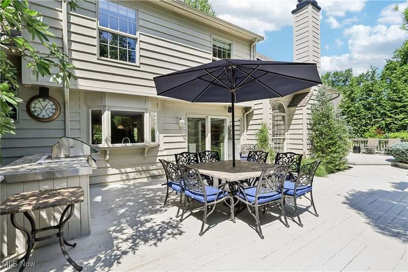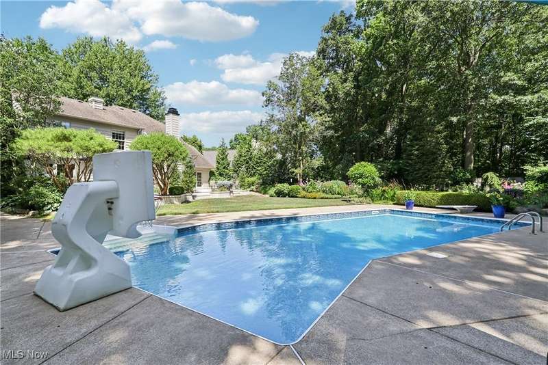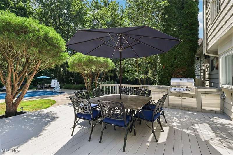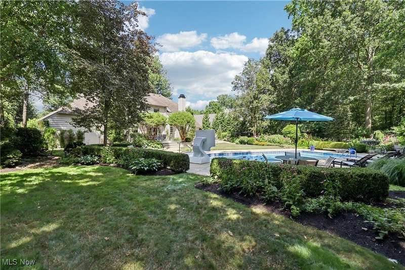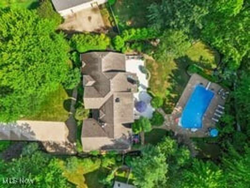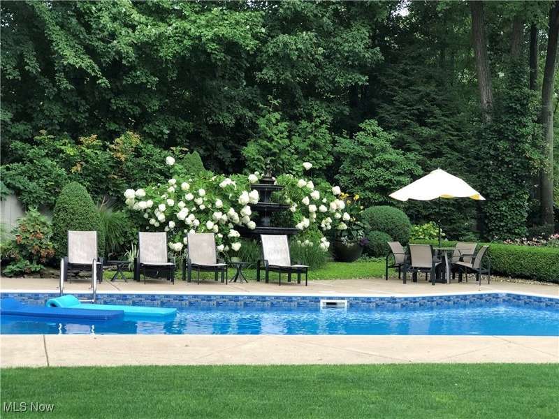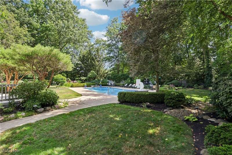 Custom built, one owner Colonial style home w/ 4 bedrooms (first floor master suite), 6 total baths (3 full, 3 half), full, finished basement and in-ground pool in Devonshire Estates! With nearly 4800 total sq/ft (including 1347 lower level) w/ many upgrades and recent updates featuring a 21x14 eat-in kitchen w/ tiled floor, extra long island/breakfast bar, white cabinets, desk (all w/ Corian counter-tops), pantry, built-in glass cabinets, wine cooler, Sub Zero fridge, new convection wall oven (2025) and slider leading out to huge wood deck! 20x13 2 story living room w/ cathedral ceilings and skylights, fireplace and built-in shelves/cabinet/wet bar. Formal dining room w/ fireplace and 19x15 family room w/ front bay window. 17x16 first floor master suite w/ access to private rear deck, large master bath w/ walk-in tiled shower, walk-in closet! Dual stairs leading to second w/ 3 bedrooms (main bedroom w/ full bath), 16x14 library/study (can be extra bedroom) w/ add`l full bath w/ glass block shower and large walk-in closet for plenty of storage space! Lower level full basement (new carpet 2025) w/ 36x14 recreation room, bedroom, half bath and utility room! Main level laundry/mudroom off of 2.5 car garage w/ deep bump out w/ built-ins incl washer/dryer. 2 story foyer entrance. Two 1/2 baths on main level. Great home for outdoor entertaining featuring a heated pool maintained yearly, amazing, meticulously maintained professionally landscaped yard w/ many varieties of mature flowers/plants/trees w/ sprinkler system, full wood deck w/ new built-in gas grill (2025) and fully fenced-in. Ext full house paint 2023, gutter guards 2020. Situated in Devonshire Estates, conveniently located near Crocker Park shops and restaurants, major highways (90 and 480) and schools