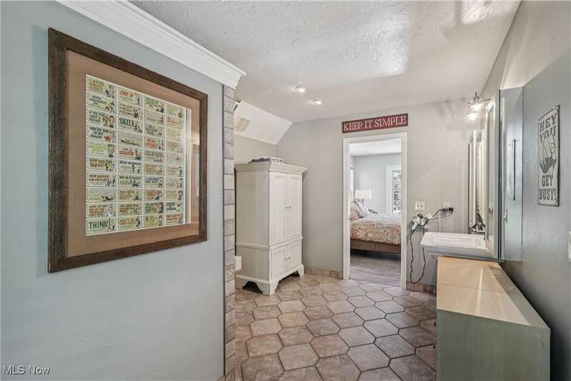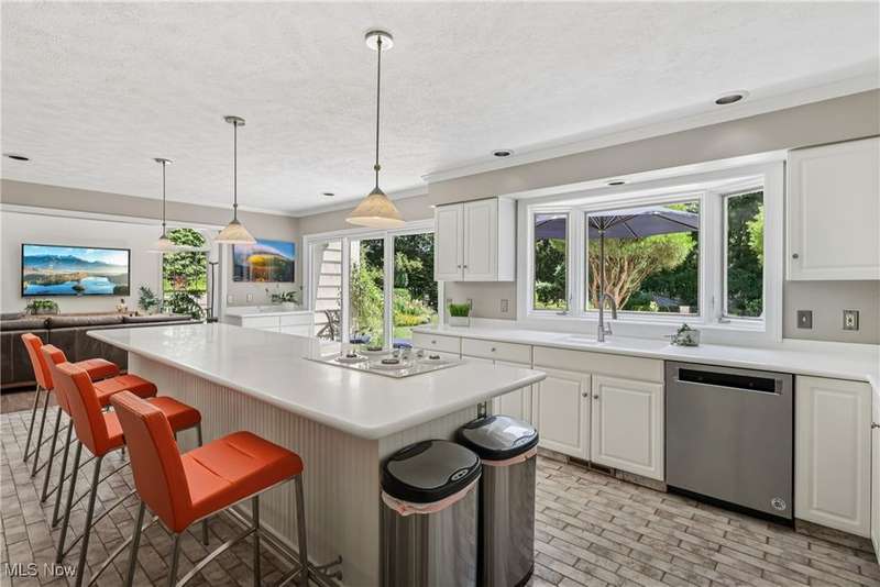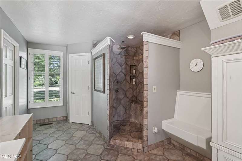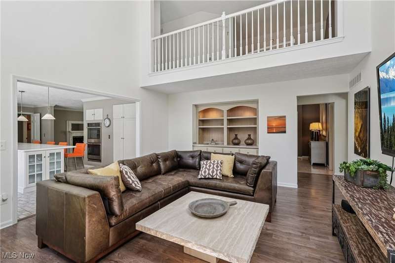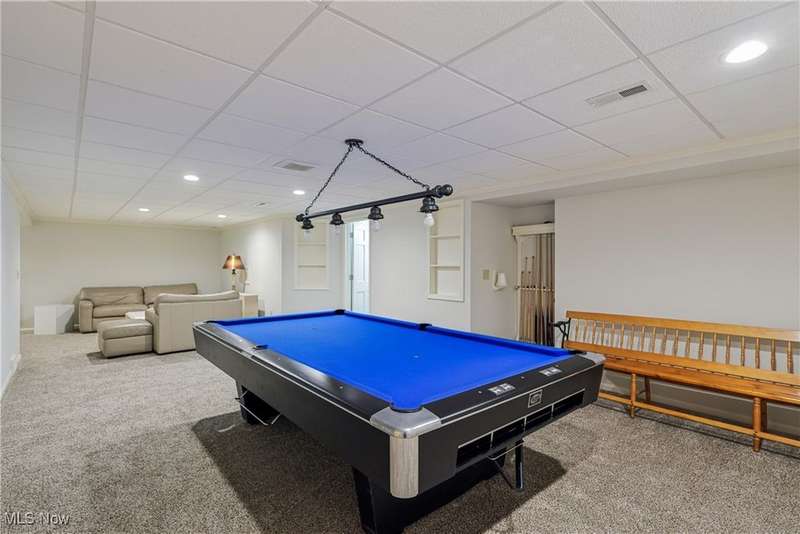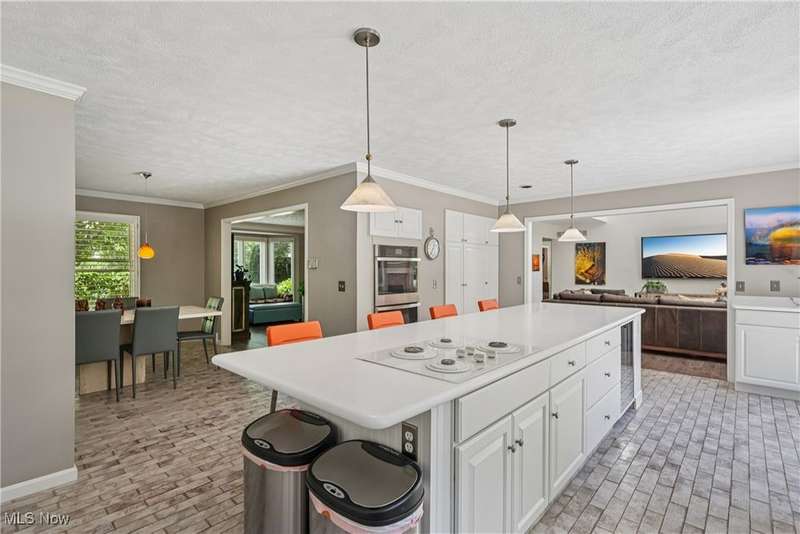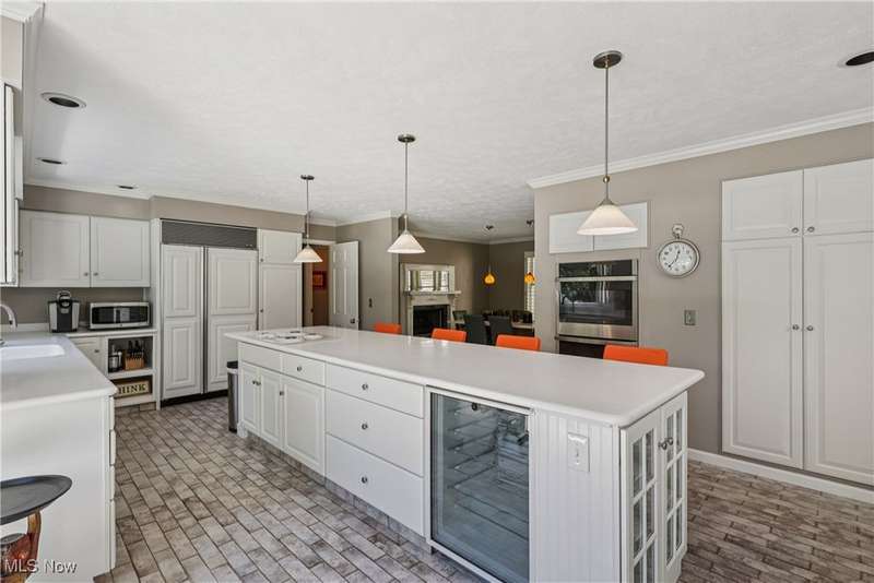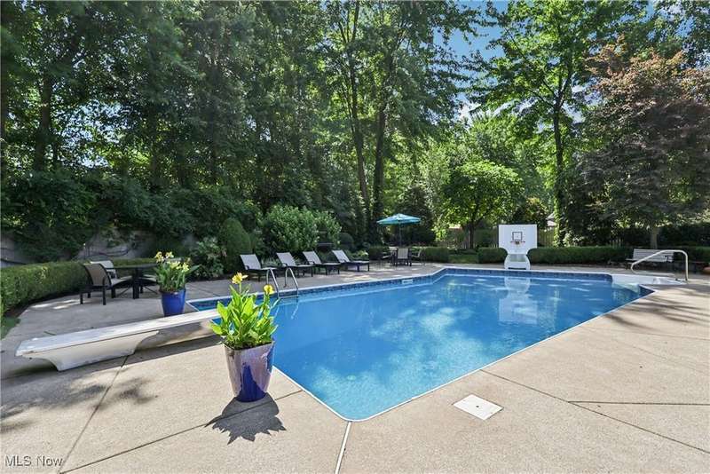 Custom built, one owner Colonial style home w/ 4 bedrooms (first floor master suite), 6 total baths (3 full, 3 half), full, finished basement and in-ground pool in Devonshire Estates! With nearly 4800 total sq/ft (including 1347 lower level) w/ many upgrades and recent updates featuring a 21x14 eat-in kitchen w/ tiled floor, extra long island/breakfast bar, white cabinets, desk (all w/ Corian counter-tops), pantry, built-in glass cabinets, wine cooler, Sub Zero fridge, new convection wall oven (2025) and slider leading out to huge wood deck! 20x13 2 story living room w/ cathedral ceilings and skylights, fireplace and built-in shelves/cabinet/wet bar. Formal dining room w/ fireplace and 19x15 family room w/ front bay window. 17x16 first floor master suite w/ access to private rear deck, large master bath w/ walk-in tiled shower, walk-in closet! Dual stairs leading to second w/ 3 bedrooms (main bedroom w/ full bath), 16x14 library/study (can be extra bedroom) w/ add`l full bath w/ glass block shower and large walk-in closet for plenty of storage space! Lower level full basement (new carpet 2025) w/ 36x14 recreation room, bedroom, half bath and utility room! Main level laundry/mudroom off of 2.5 car garage w/ deep bump out w/ built-ins incl washer/dryer. 2 story foyer entrance. Two 1/2 baths on main level. Great home for outdoor entertaining featuring a heated pool maintained yearly, amazing, meticulously maintained professionally landscaped yard w/ many varieties of mature flowers/plants/trees w/ sprinkler system, full wood deck w/ new built-in gas grill (2025) and fully fenced-in. Ext full house paint 2023, gutter guards 2020. Situated in Devonshire Estates, conveniently located near Crocker Park shops and restaurants, major highways (90 and 480) and schools