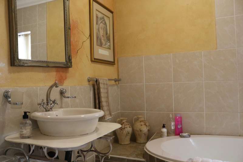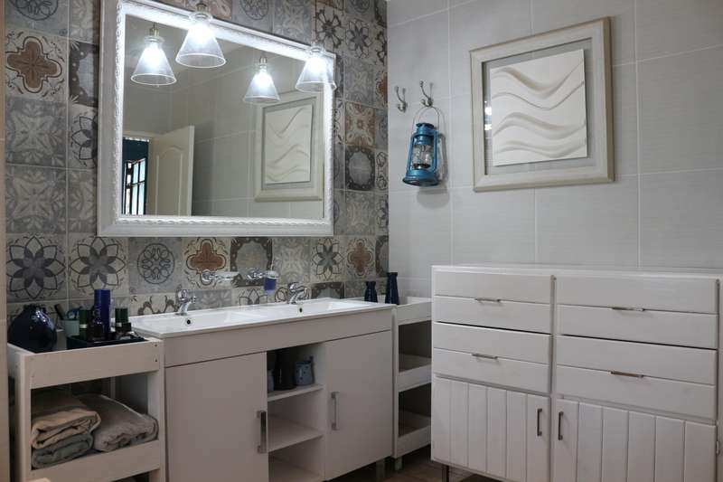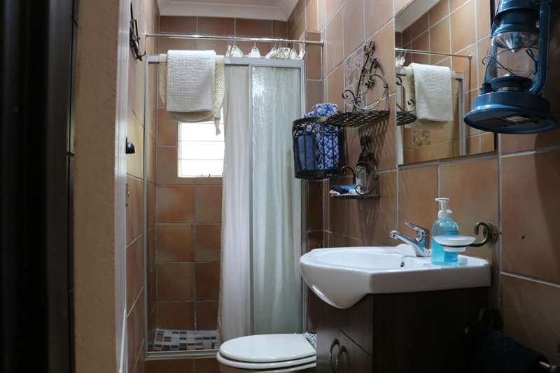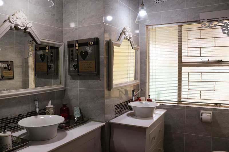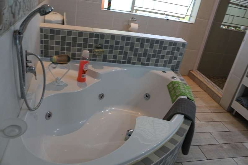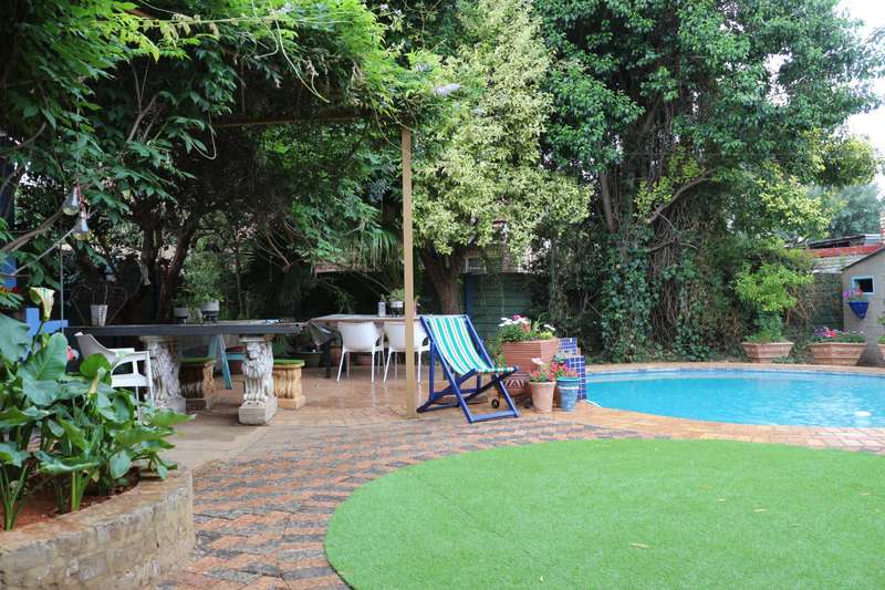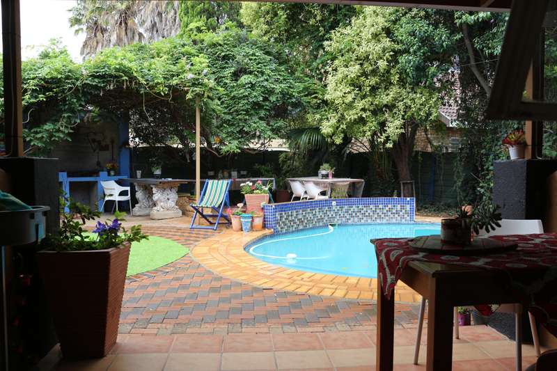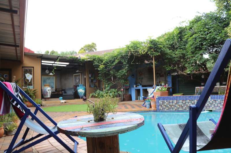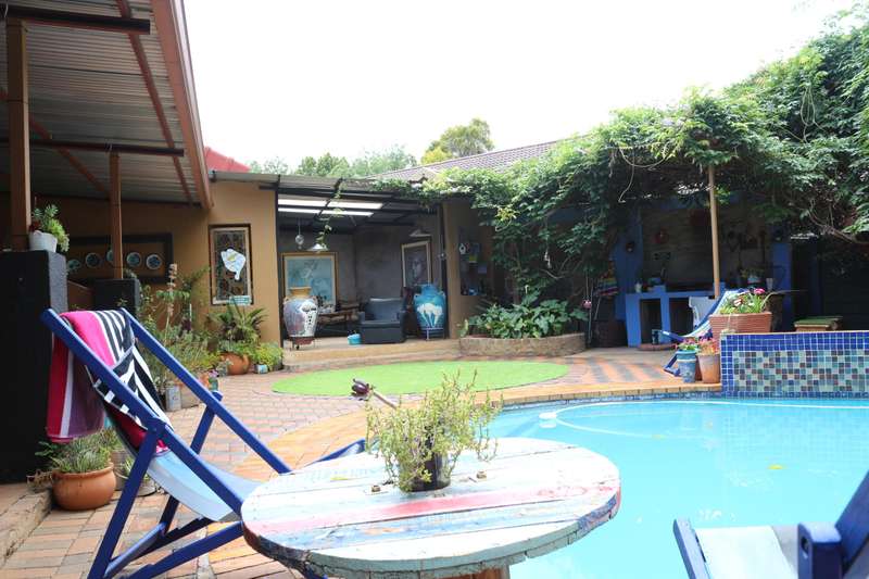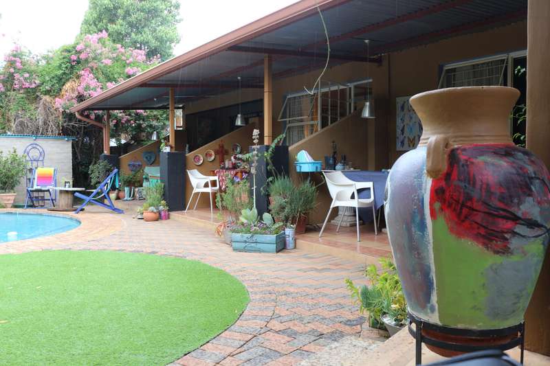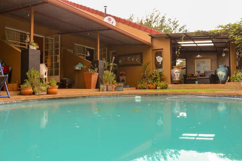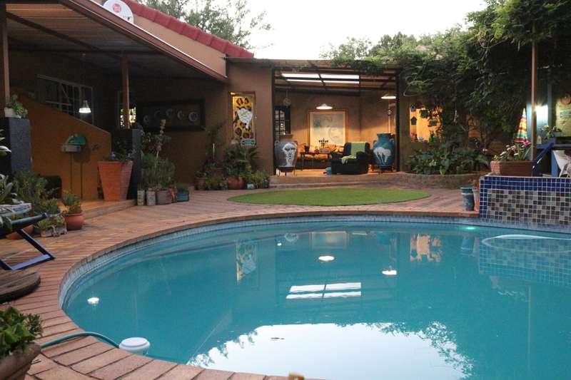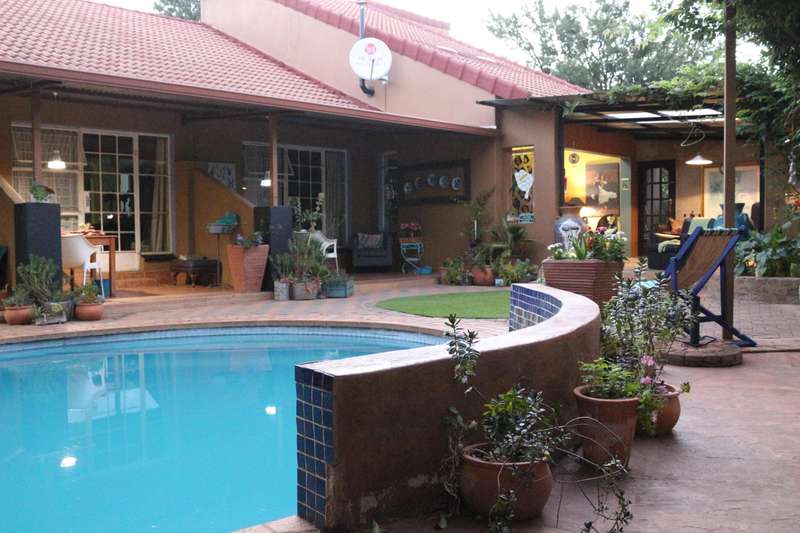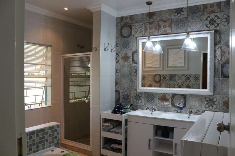 It is rare for a property, boasting such extravagances to become available, but this is a home where dreams can become a reality. This property of generous proportions features an open plan living area,dining room and kitchen as well as a study. The kitchen is equipped with a gas stove and electric hob. There are 5 charming and spacious bedrooms, all with built-in cupboards and modern en suite bathrooms. The patios from the living area and 4 bedrooms extend to tranquil surroundings with a view on the sparkling blue pool. The 5th bedroom is on the 1st floor and has a separate entrance with spacious balcony. It is ideal to use as separate guest suite or to rent out for a bit of extra income. A double garage and carports to accommodate 4 cars leave ample of space for everyone.
