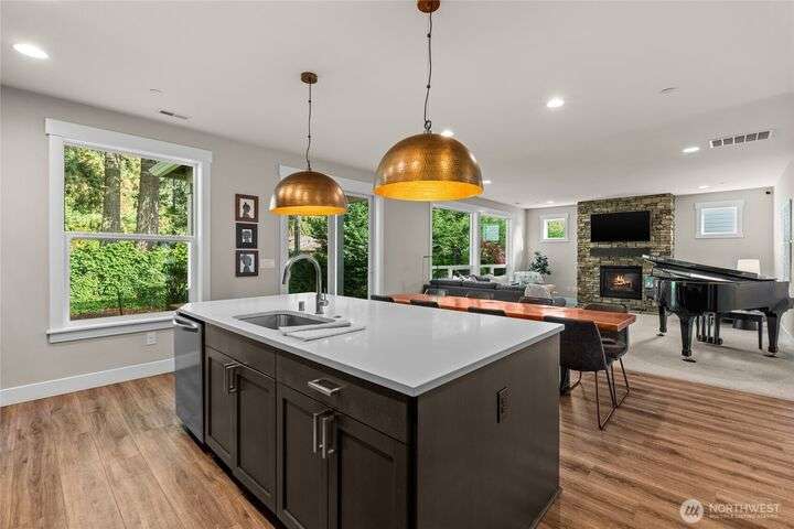 Ideally located near Uptown & Met Market, this 4 bed/2.5 bath Garrette built home is truly exceptional. From the moment you step through the front door, you’ll be greeted by soaring 9-foot ceilings, oversized windows, 8-foot doors & a bright atmosphere. Thoughtfully designed for modern living, this spacious two-story home offers an ideal layout for entertaining & everyday comfort. The open-concept great room flows into the decadent kitchen, where an oversized quartz island with striking pendant lighting serves as the heart of the home. Enjoy the coziness of the gas fireplace while overlooking the private backyard. Upstairs, discover a whimsical bonus room featuring a built-in rock climbing wall & plenty of flexible space to make your own.
