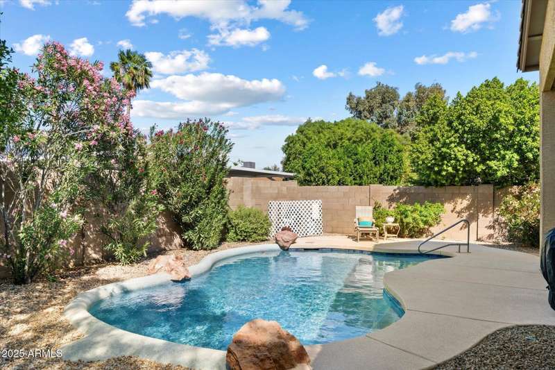 Conveniently located in Northeast Phoenix, this thoughtful Pulte floorplan will appeal to families, young professionals or couples looking for the next step. Vaulted ceilings throughout create a spacious open feel in this split floorplan. 2024/2025 updates include wide plantation shutters in main living areas, tile flooring, recessed cans, soft white interior paint and pool resurfacing (pebble tech!!) Tile flooring runs throughout with the exception of one bedroom, currently carpeted and used as an exercise room. Easy maintenance front and back, with a dog run, are huge bonuses! Neighborhood grassy area is just a few blocks away. Sweetwater Cove is a conveniently located Northeast Phoenix community with easy access to freeways, shopping, restaurants and hiking. Wonderful property!