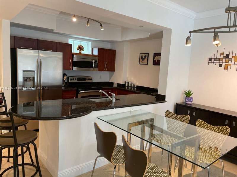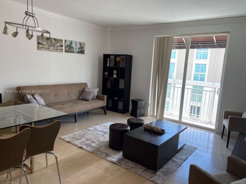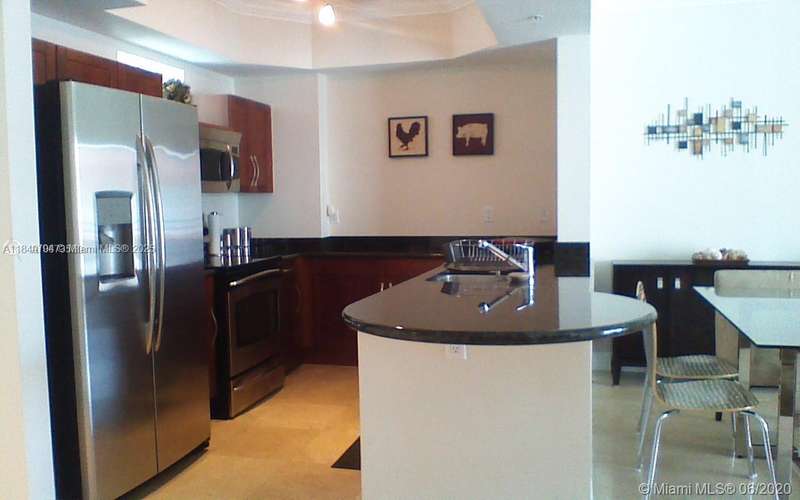 FURNISHED ONLY! Downtown Dadeland Beautiful, bright, spacious 1 bed 1 bath almost 800 sqft apartment in the sought after Downtown Dadeland. Fully furnished and equipped with dishes, flatware, silverware, linen towels, TV, pots and pans just to mention. Excellent condition, lots of storage Washer and Dryer inside the unit. Open kitchen with granite countertop, and MARBLE floors throughout. Custom closets and walk-in closet with build outs. Open Balcony looking over the central fountain. Rental includes: 1 covered and assigned parking space, water, sewer, cable tv, internet and garbage. It is NOT OFFERED UNFURNISHED. Community has pool, Gym, restaurants and shops in a walking distance. Across the street from Dadeland Mall and steps from Metrorail station.