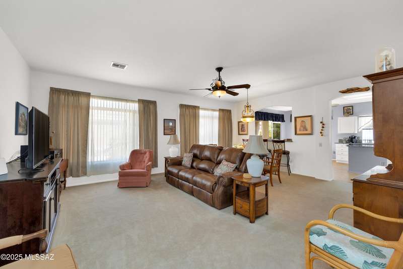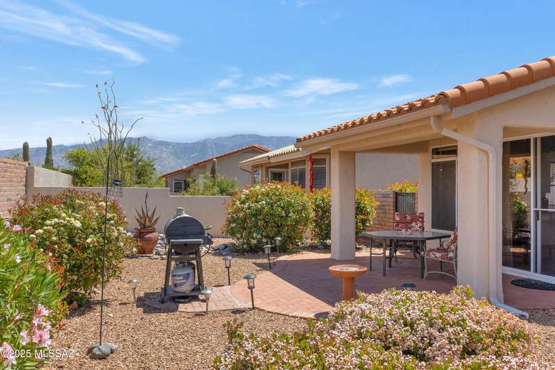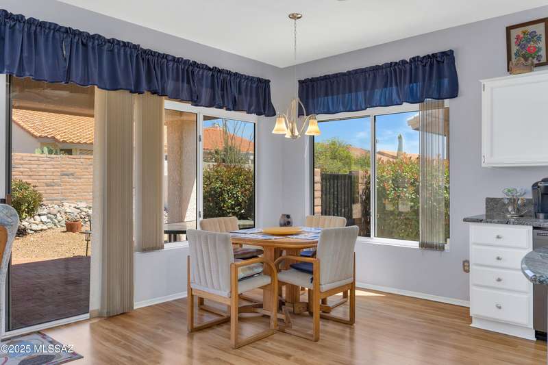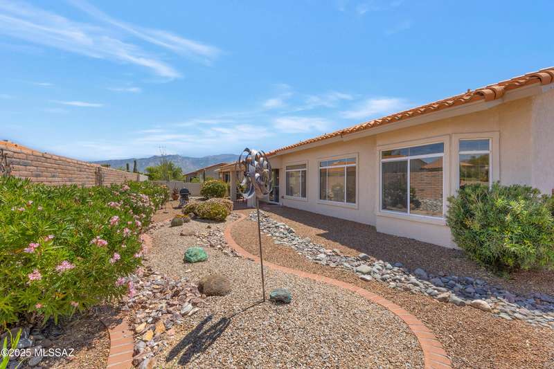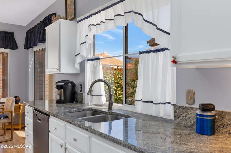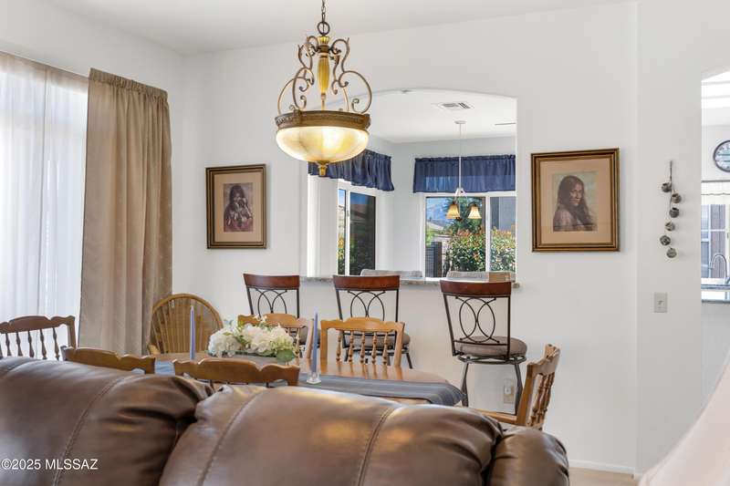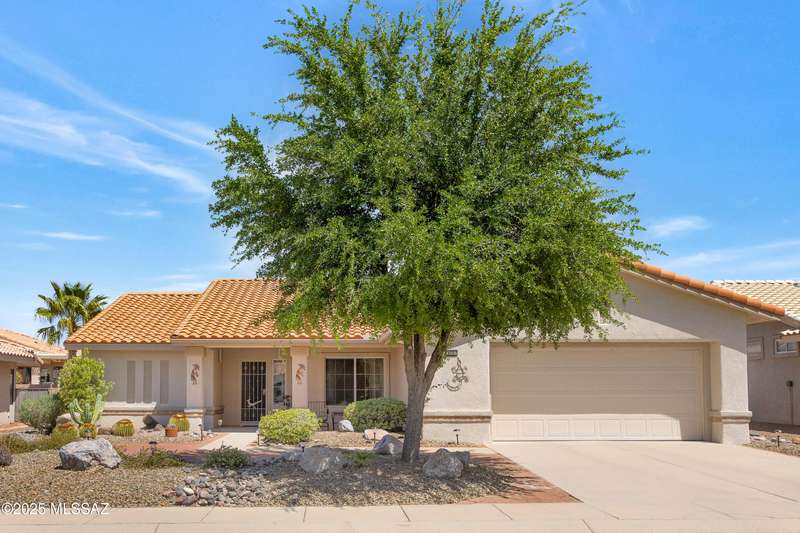 Welcome to Sun City Oro Valley! This meticulously maintained Cottonwood model is light and bright and brings the outdoors in. The open floorplan is perfect for entertaining. The kitchen includes plenty of storage, granite countertops, an island, plus a bonus seating area. The spacious primary suite includes a bay window, large walk in closet and granite countertops. The split bedroom floorplan is perfect for guests. Enjoy a bonus room off the kitchen for an office or den. The extended garage has plenty of room for storage and includes cabinets and a sink. The roof underlayment has been replaced with a new roof membrane. Explore the Sun City lifestyle that includes a state of the art fitness center, 2 swimming pools, pickle ball courts, tennis courts, and so much more!