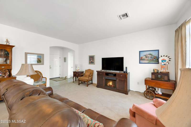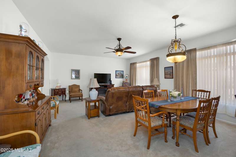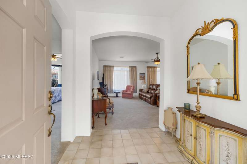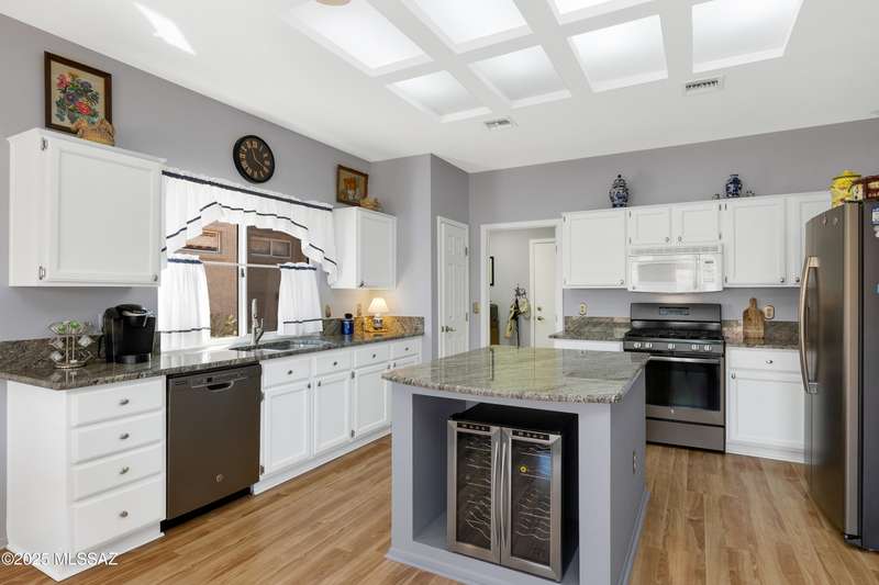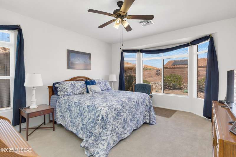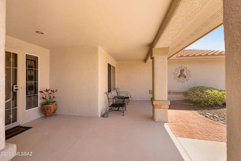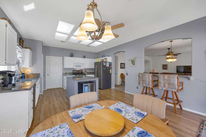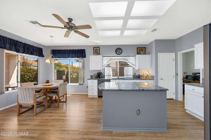 Welcome to Sun City Oro Valley! This meticulously maintained Cottonwood model is light and bright and brings the outdoors in. The open floorplan is perfect for entertaining. The kitchen includes plenty of storage, granite countertops, an island, plus a bonus seating area. The spacious primary suite includes a bay window, large walk in closet and granite countertops. The split bedroom floorplan is perfect for guests. Enjoy a bonus room off the kitchen for an office or den. The extended garage has plenty of room for storage and includes cabinets and a sink. The roof underlayment has been replaced with a new roof membrane. Explore the Sun City lifestyle that includes a state of the art fitness center, 2 swimming pools, pickle ball courts, tennis courts, and so much more!
