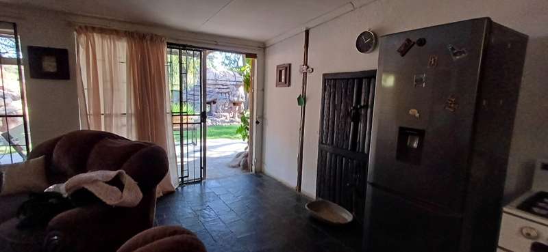 New in the market!! this exceptional and neat .75-hectare smallholding in De Kroon area near Brits. Perfect for farming or a peaceful rural lifestyle, this property offers an excellent infrastructure with lots of potential for a business from home. Property Features: Main House: 3 bedrooms, 3 bathrooms 2 spacious lounge and dining area and built in braai with bar. Farm kitchen with lots of cupboards and a pantry with additional laundry room. Flat: 1 bedroom, 1 bathroom, open-plan kitchen and lounge. Apart from the main house, you have a double garage, shop and storage rooms. Also offer a relaxing front patio with garden view Additional Features: 2 x Storerooms 1 x borehole 1 x Water tank 1 x Triple Carport The property is enveloped by lush green lawns, mature trees, and meticulously maintained gardens. This property boasts a robust water flow from the borehole, presenting limitless potential for farming or various other projects. CCTV cameras provide the security you need with security beams and 24/7 response. Single phase electricity. Please contact Jan to arrange a viewing !!
