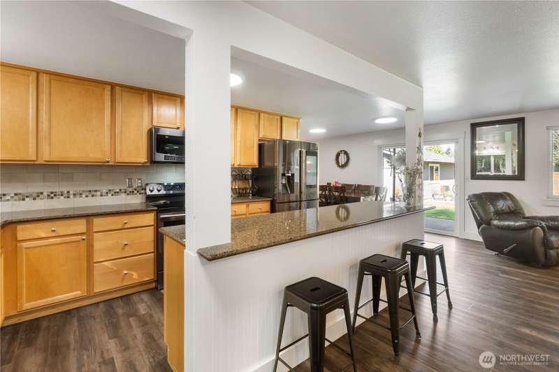 Beautifully maintained and updated home with 5 bedrooms + office/flex room just hit the market for the first time. Positioned perfectly on shy of 1/4 acre this home has space to live and play. Step inside to the open floor-plan with natural light and newer LVP floors. Newer kitchen appliances, granite counters and long kitchen bar perfect for eating. Both bathrooms have been fully remodeled and are better than new! Three bedrooms on the main and two upstairs, ideal for versatile living. Large and inviting living room along with a great room provides plenty of space for entertaining! Enjoy the large backyard, garden area, finished detached garage, RV parking & space to play. Enjoy nearby Orangegate Park. Puyallup Schools. Close to freeways!