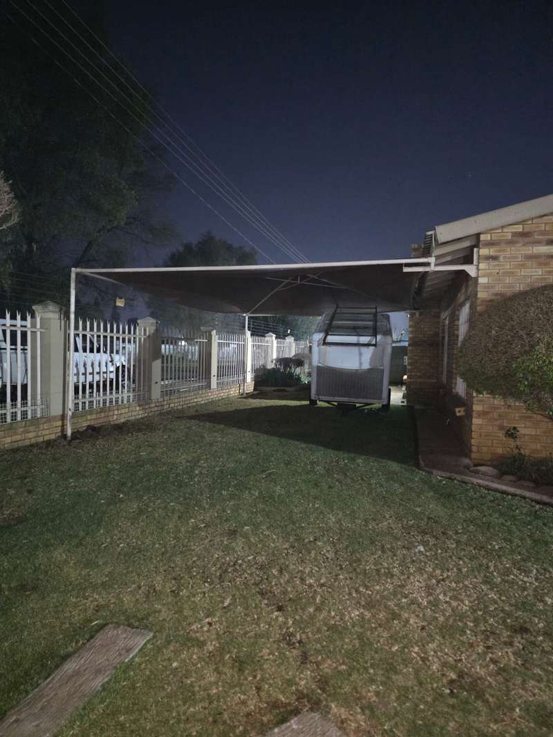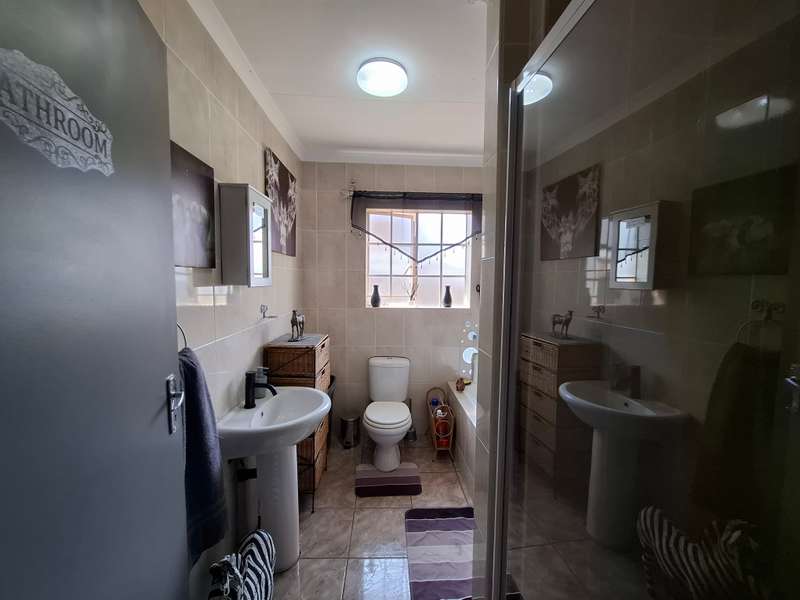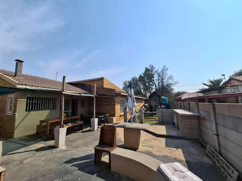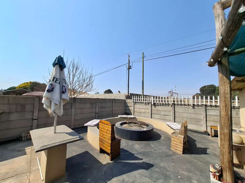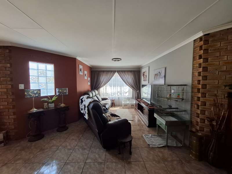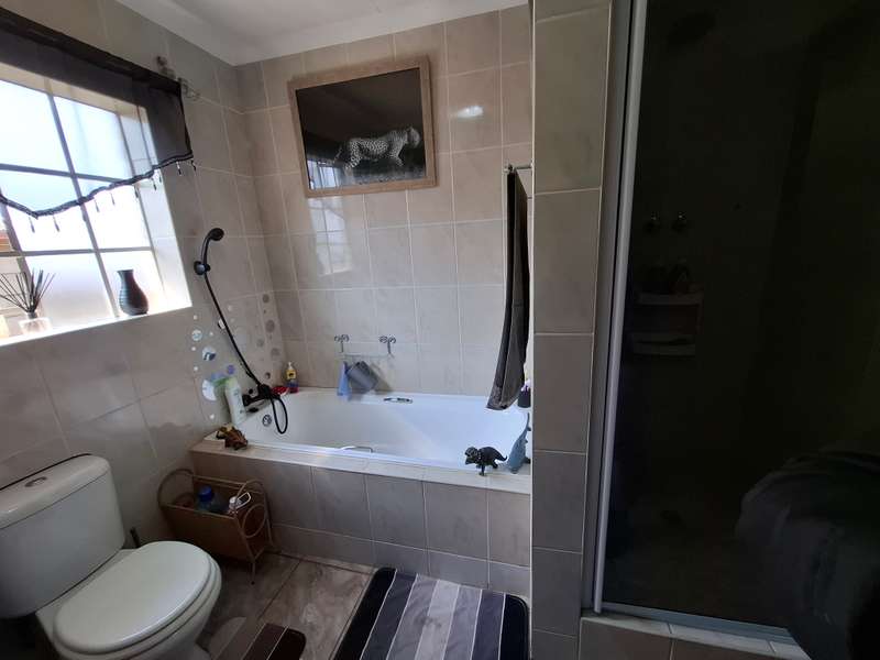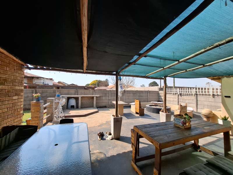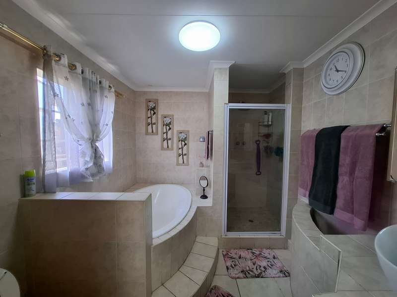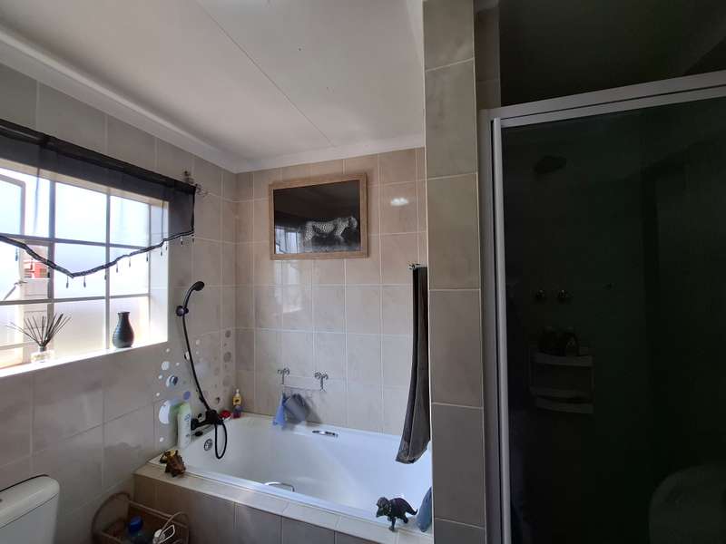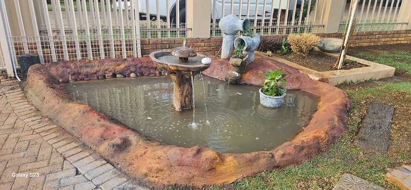 This beautiful property is low maintenance with face brick walls and a garden and is improved with 4 bedrooms, 3 with built-in cupboards, two beautiful bathrooms, and an absolutely stunning big kitchen with a scullery and laundry. Entertainers dream with a big entertainment area, built-in braai, and a jacuzzi that walks out to the backyard with a big patio and boma, an outside toilet, and jungle gyms that will keep your kids entertained. A bonus to this property is the big flat that has its own entrance with a kitchen, bathroom, living room, and one bedroom There is more than enough safe parking with a double garage, two carports, and another carport in front of the house. The property has full security features such as alarm and a CCTV system with electric fencing and beams. There is a 10000-liter tank with a pump so water will not be a problem, there is an inverter that powers a few lights when the electricity is off.