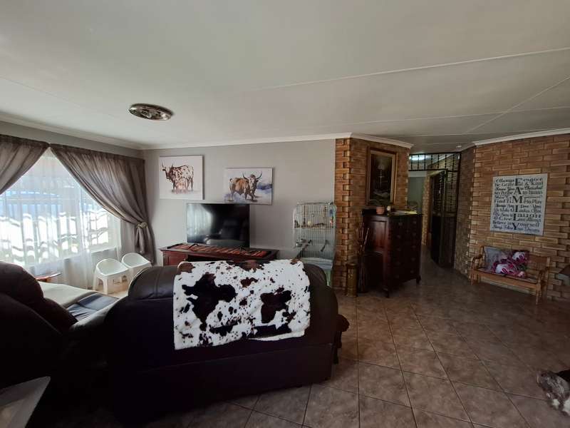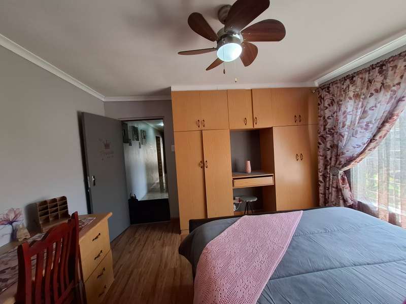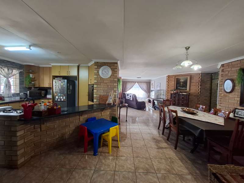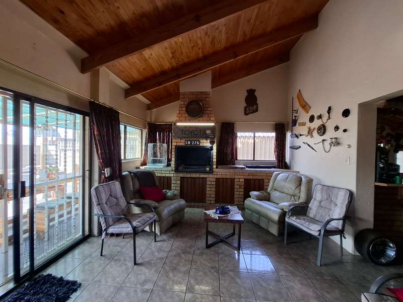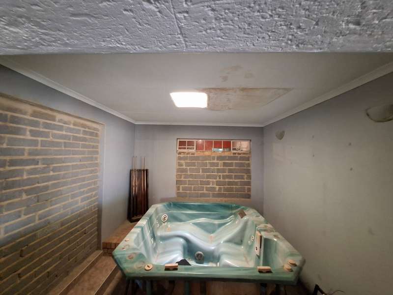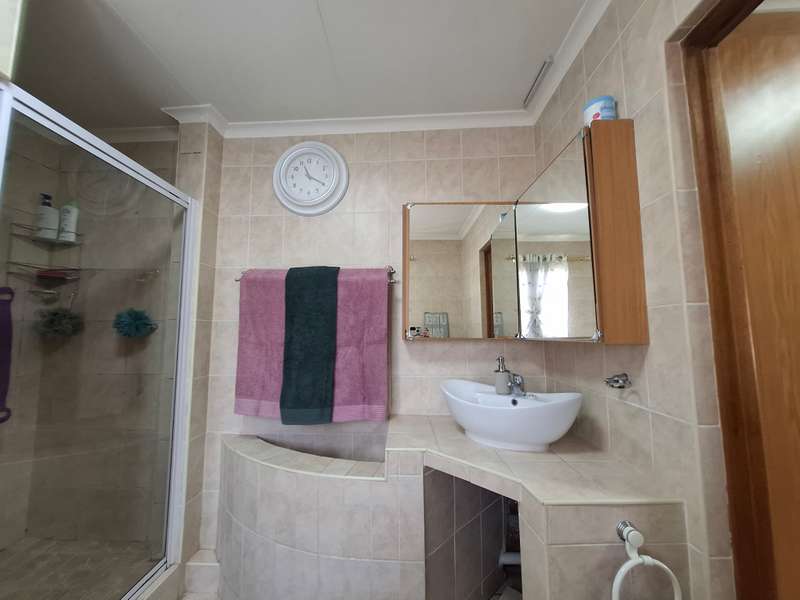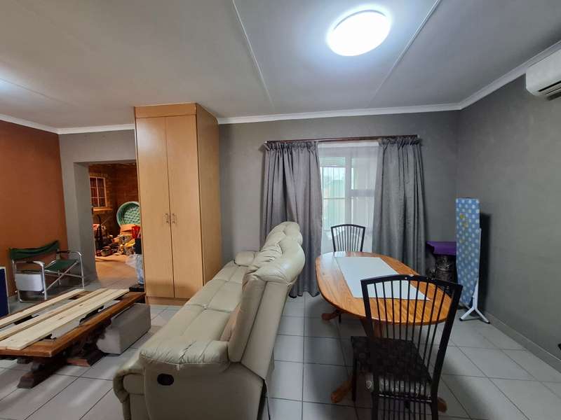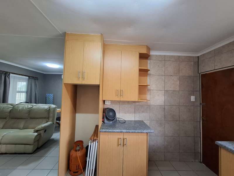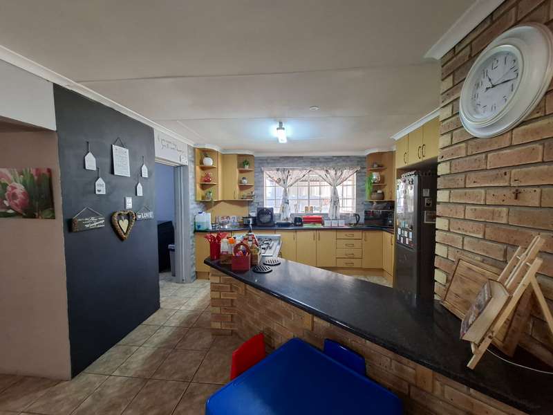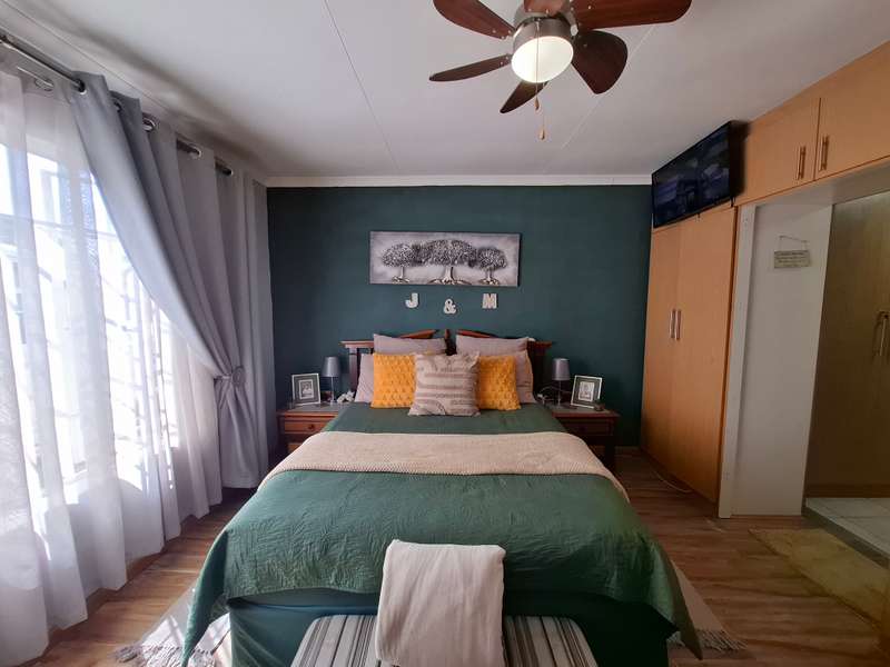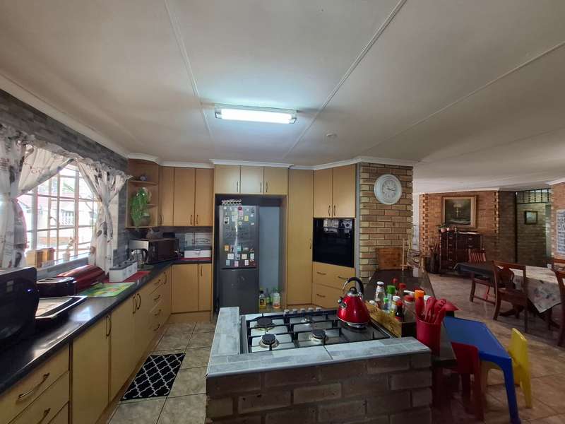 This beautiful property is low maintenance with face brick walls and a garden and is improved with 4 bedrooms, 3 with built-in cupboards, two beautiful bathrooms, and an absolutely stunning big kitchen with a scullery and laundry. Entertainers dream with a big entertainment area, built-in braai, and a jacuzzi that walks out to the backyard with a big patio and boma, an outside toilet, and jungle gyms that will keep your kids entertained. A bonus to this property is the big flat that has its own entrance with a kitchen, bathroom, living room, and one bedroom There is more than enough safe parking with a double garage, two carports, and another carport in front of the house. The property has full security features such as alarm and a CCTV system with electric fencing and beams. There is a 10000-liter tank with a pump so water will not be a problem, there is an inverter that powers a few lights when the electricity is off.