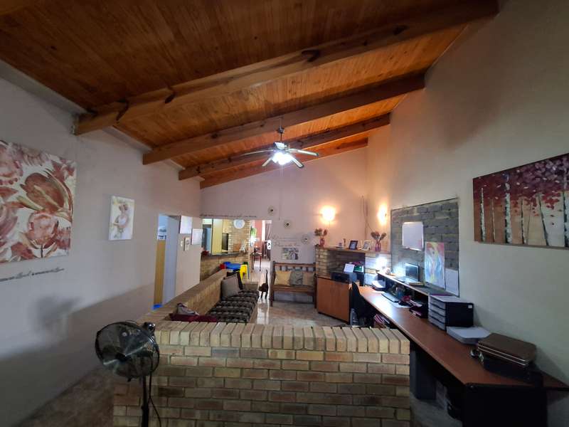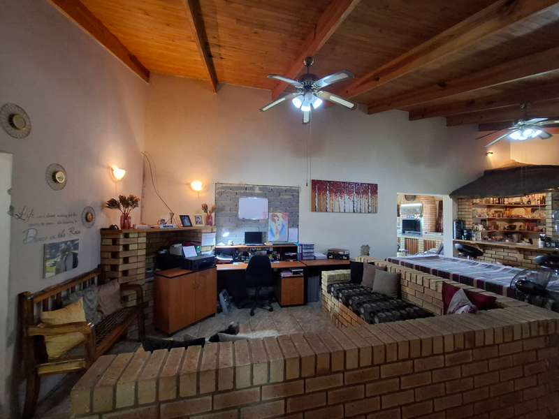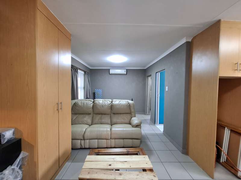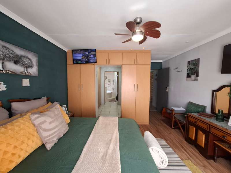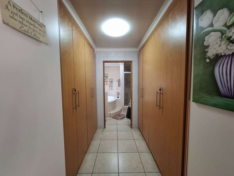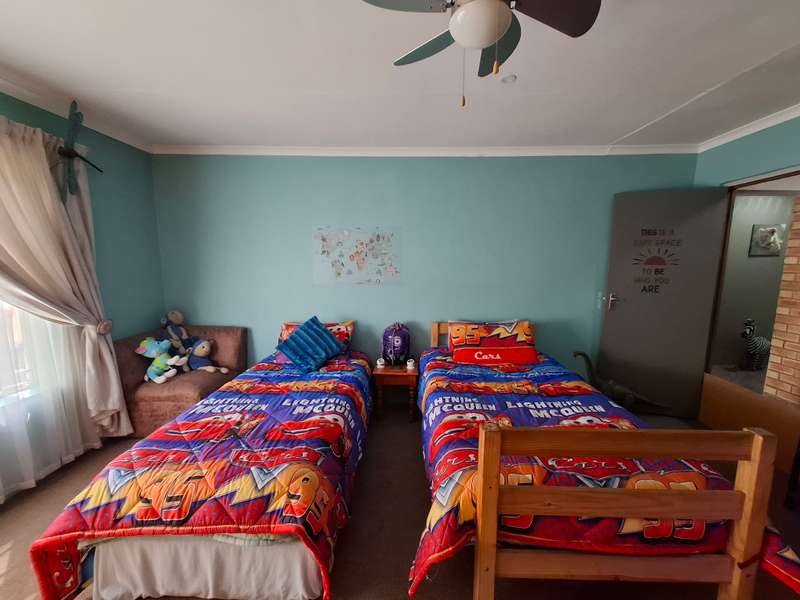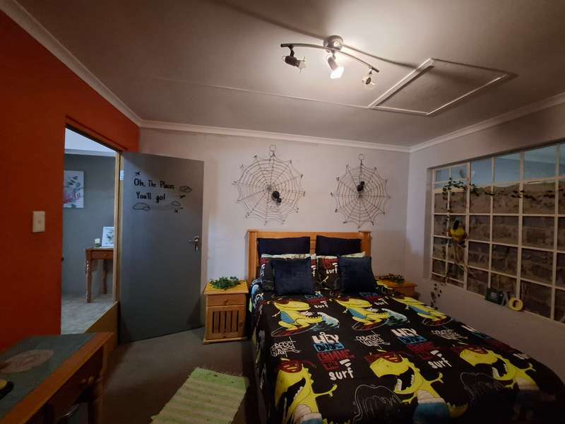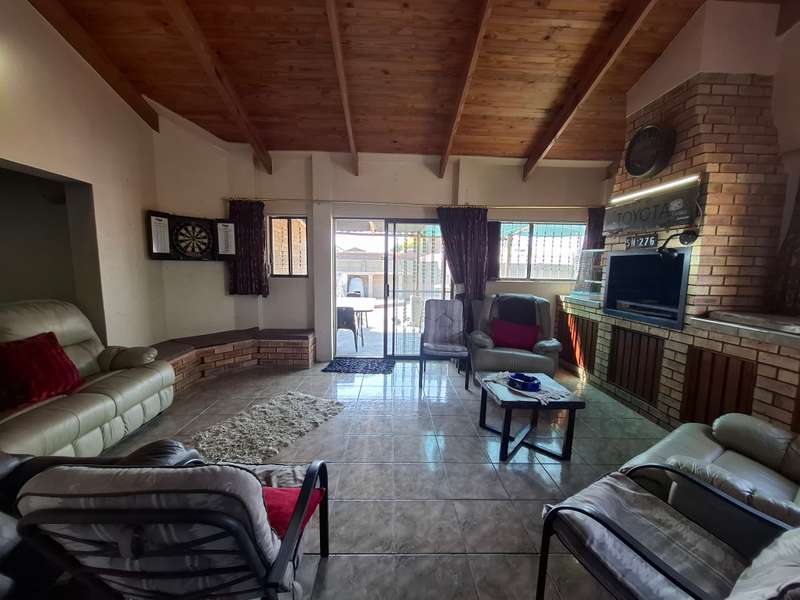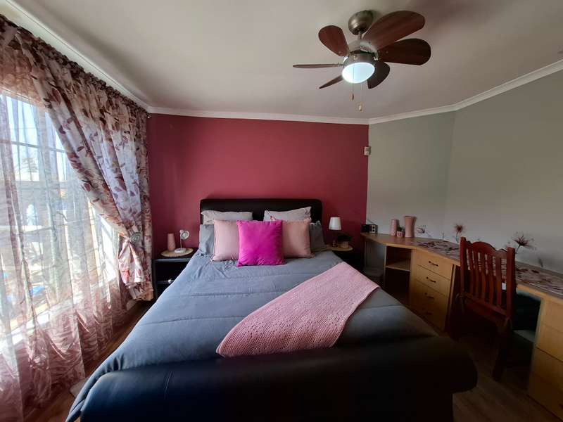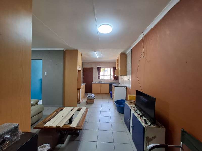 This beautiful property is low maintenance with face brick walls and a garden and is improved with 4 bedrooms, 3 with built-in cupboards, two beautiful bathrooms, and an absolutely stunning big kitchen with a scullery and laundry. Entertainers dream with a big entertainment area, built-in braai, and a jacuzzi that walks out to the backyard with a big patio and boma, an outside toilet, and jungle gyms that will keep your kids entertained. A bonus to this property is the big flat that has its own entrance with a kitchen, bathroom, living room, and one bedroom There is more than enough safe parking with a double garage, two carports, and another carport in front of the house. The property has full security features such as alarm and a CCTV system with electric fencing and beams. There is a 10000-liter tank with a pump so water will not be a problem, there is an inverter that powers a few lights when the electricity is off.