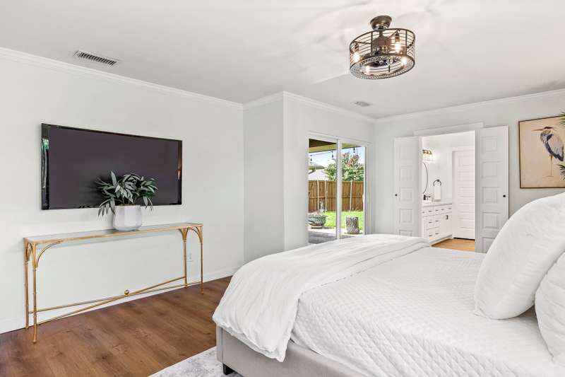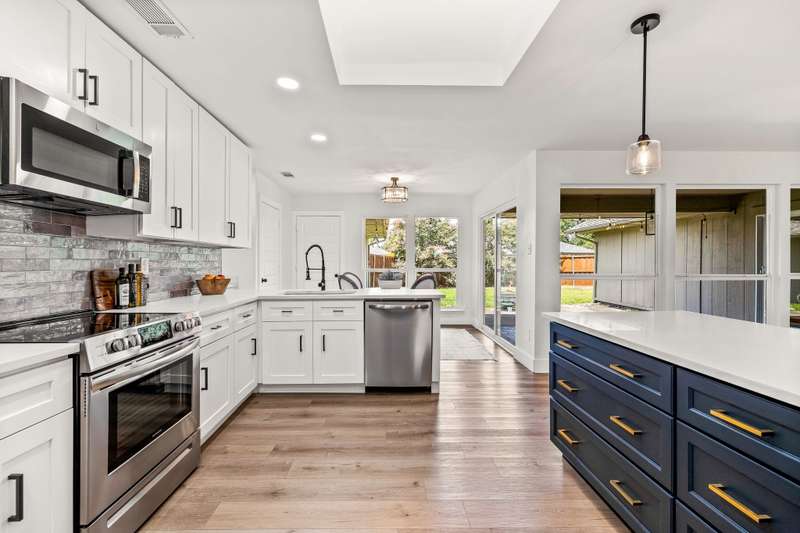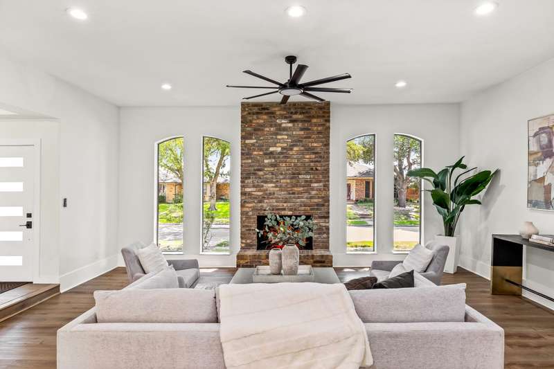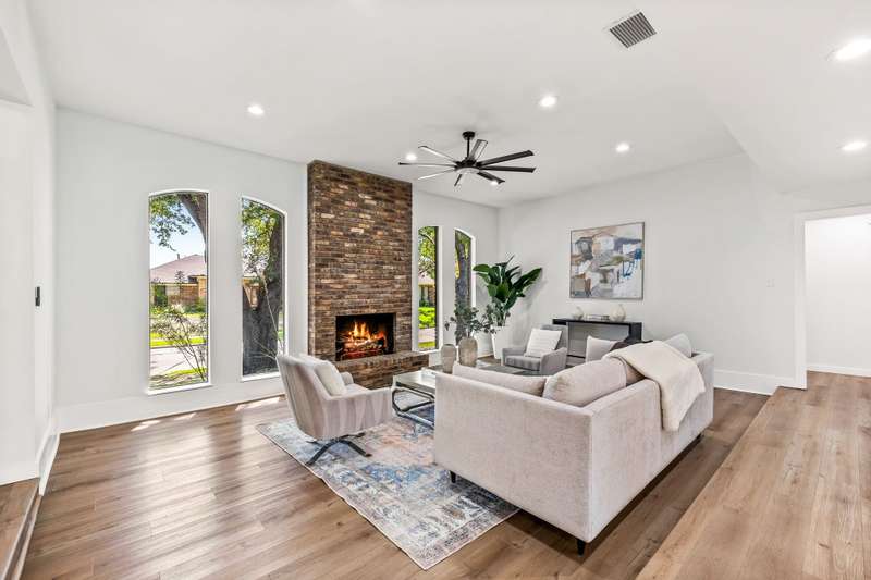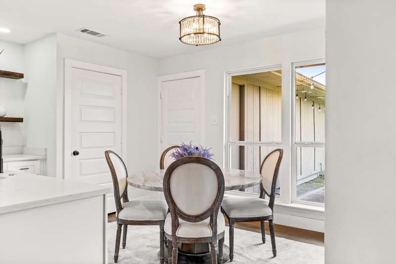 Nestled on a quiet street in the established Woodcreek neighborhood, this beautifully updated 4-bedroom, 3-bathroom home offers abundant natural light and an open-concept design. Bright interiors feature soaring ceilings, expansive windows and luxury vinyl plank flooring throughout. The inviting living room with a cozy fireplace flows seamlessly into the dining area, while the renovated eat-in kitchen boasts ample storage, modern cabinetry, updated appliances, and a charming breakfast nook. The oversized primary suite includes private patio access and a newly refreshed bath with a walk-in shower, dual vanities, and generous closet space. Three additional bedrooms and two full baths provide plenty of room for family or guests. Enjoy the elegant covered patioperfect for outdoor dining and entertainingsurrounded by mature trees. Ideally located just minutes from shopping, dining, entertainment, and major highways, this home combines comfort, style, and convenience.