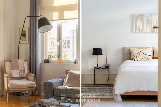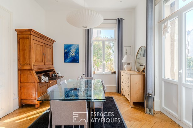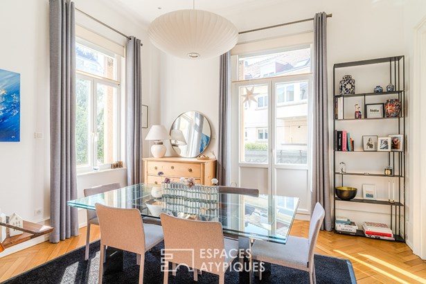 Ideally located near the prestigious Parc de l'Orangerie, this 124 m2 luxury flat is part of a small co-ownership of three lots in a building dating from the early 20th century. Entirely renovated using quality materials, it combines old-world charm with modern comforts. Nestled on the raised ground floor, it benefits from an optimised layout and meticulous fixtures and fittings, while offering a peaceful, sought-after living environment.