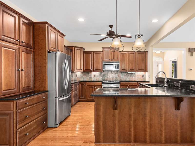 Welcome to this beautifully maintained home in the desirable gated community of Carriage Park! From thecharming covered front porch to the spacious, light-filled interior, this residence offers comfort, style,and functionality at every turn. The open-concept layout features an elegant great room with a cozy fireplace?ideal for both everyday living and entertaining. The kitchen is a chef's dream, outfitted with rich cherry cabinetry, granite countertops, and plenty of prep space. Just off the main living area, the all-season sunroom?with its own gas fireplace and scenic views?invites year-round relaxation. Step outside to the covered back deck, perfect for enjoying the outdoors in any weather. The main-level primary suite includes an expansive walk-in closet and a bath with dual vanities and a large walk-in shower. A dedicated office with custom built-ins adds convenience and sophistication. Downstairs, the finished lower level offers incredible flexibility, featuring a spacious family room, a craft room with durable epoxy flooring, a workshop, two additional bedrooms (including one with stunning epoxy flooring), and a full bath. Residents of Carriage Park enjoy access to a clubhouse, indoor pool, tennis courts, and more. Located just minutes from shopping, dining, and everyday essentials, this home offers the perfect blend of peaceful living and urban convenience.