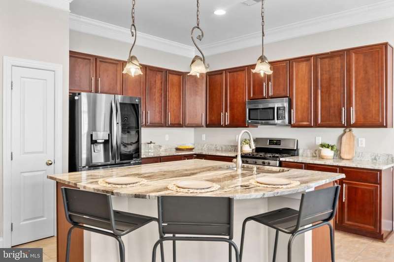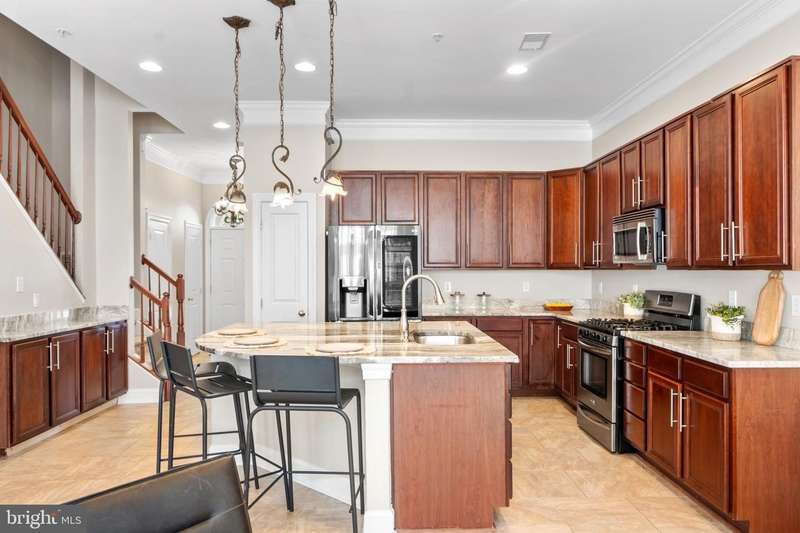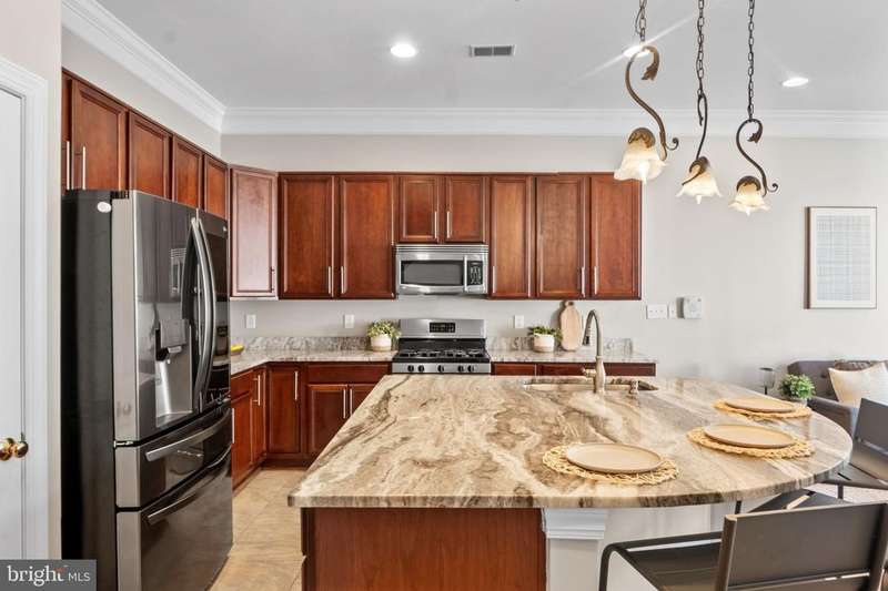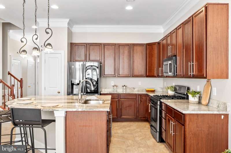 Experience elegance and comfort in one of Clarksburg's most desirable communities Clarksburg Town Center! This gorgeous townhome offers over 2,600 sq ft of exceptional living space with 3 bedrooms, 2.5 baths, and a detached 2-car garage. The main level features 10 ft ceilings and a layout designed for both comfort and entertaining, providing all the convenience you need. Enjoy a formal dining area, a spacious living room with a cozy gas fireplace, and a chef's kitchen with a large island, granite countertops, and stainless steel appliances. Upstairs, the luxurious owner's suite offers grand double doors, a walk-in closet, and a spa inspired bath with a soaking tub, glass shower, and dual vanity. A dedicated office space makes this level ideal for work or relaxation. The upper level includes two additional bedrooms and a versatile second living area. The other full bath is impressively spacious, featuring a double vanity. Step outside to a fully fenced yard with low maintenance landscaping and direct access to the garage. Located just minutes from Clarksburg Outlets, I-270, restaurants, and parks. Come see this one today and make it your home!