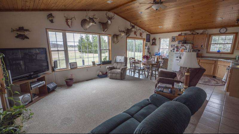 County living at its finest. A cozy, 2 bd 1 bath home on a sprawling 70+ acres. Home features and open concept floor plan, main level laundry, and a full basement. The unencumbered views of the property from the living room are second to none. Supplemental wood/boiler heating makes the cost of heating the home very minimal. The home is accompanied by a 26x32 detached, 3 car garage. The acreage has a wide range of diversity. Nearly 1 mile of sucker creek frontage, which the seller has meticulously monitored and maintained wonderful stream health resulting in a healthy native Brooke trout population. 11 tilable acres, CRP and pine plantings and a nice mix of low and high ground woods make this property a haven for neighborhood wildlife. Come and see this place for yourself! Land in MFL.