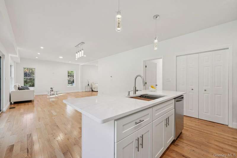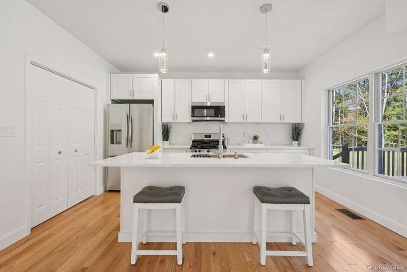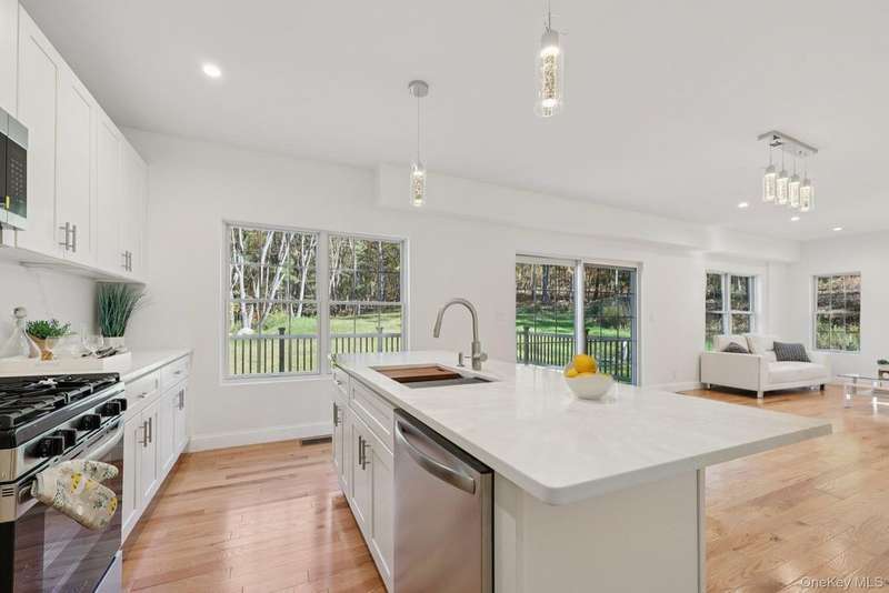 Your dream home awaits! Make your appointment to see this stunning new colonial in the Town of Warwick now! Ideal commuter location with access to Greenwood Lake on a large private 2 acre oasis bordering bucolic state parkland. Surrounded with sunlight - this 4 bedroom colonial features gleaming hardwood floors, high ceilings, and recessed lighting in an open concept layout. Large windows abound - allowing for serene views of trees, grass and sky. Spoil yourself (or invite your chef) to cook in the state of the art designer kitchen with those sexy quartz countertops. The coordinating kitchen island features shimmering pendant lights beckoning you to enjoy a beverage with friends or that morning coffee. Stainless steel appliances and a huge pantry offer ideal storage & cooking enjoyment. Everyone loves a mudroom side entry and this home has one right off the garage along with a gorgeous little powder room and additional closet space. A dining area in front of the island is perfectly placed under a sparkling chandelier, enjoying the view of the deck & greenery through glass sliders. A fireplace is not present but possible in the future as the builder designed the wall with flu so that if you decide you want one - you can. The grand stairway will lead you up to the upper level with the balcony views of an elegant chandelier framed by nature as seen through the oversized picture window. You will feel extra special in the expansive primary suite featuring a hallway flanked by walk in closets and a stunning primary ensuite with double vanity, water closet and oversized shower. The three other bedrooms all enjoy ample space, closets and views. There is also a laundry room and impeccably designed bathroom with a spacious vanity and bathtub. The A large level driveway and huge garage might even fit your boat! There's also a large unfinished basement waiting for your magic touch. Just minutes from Greenwood Lake Middle School and high school students enjoy the option of attending Warwick Valley HS or Chester Academy. Enjoy local wineries, breweries, shops, restaurants, hiking, boating, skiing and swimming in Orange County's most desirable area. 1 hr from NYC.