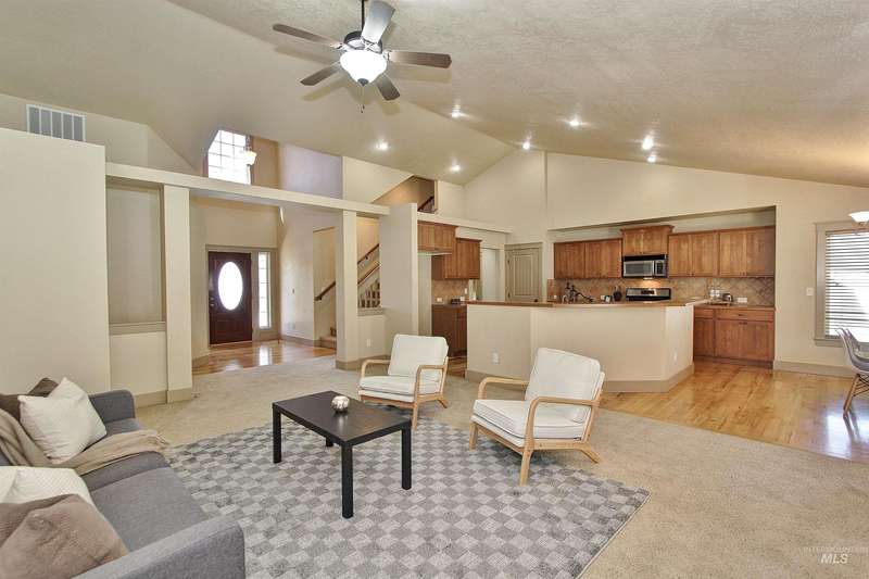 Welcome to a home that feels as inviting as it is functional. Perfectly placed on a corner lot across from the community pool, this residence opens to a great room with soaring vaulted ceilings that create a sense of space and light. The large, open kitchen flows seamlessly into the living area, making it the heart of the home—perfect for everyday living and gatherings alike. Mornings begin with coffee on the east-facing patio as the sun rises over the beautifully landscaped backyard. Afternoons are spent unwinding in the shade, hosting barbecues, or enjoying the simple ease of single-level living. The spacious bonus room, with its own bathroom, offers even more possibilities. Whether it becomes a game room, a guest retreat, or a private getaway for family members, this versatile space elevates both comfort and convenience. Just minutes from shopping and dining, close to schools, and with quick access to Micron and the Boise Airport, everything you need is within reach. Whether it’s a quick commute, weekend adventures, or evenings spent connecting with neighbors, this location makes it easy to balance work, play, and relaxation. Freshly painted with newer roof, thoughtfully maintained, & nestled in a friendly community, this home offers the perfect backdrop for everyday life.