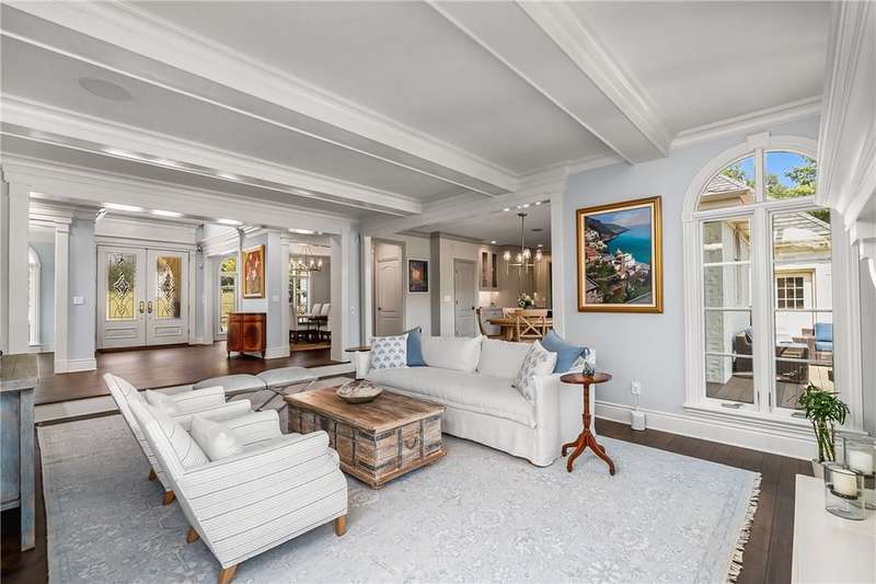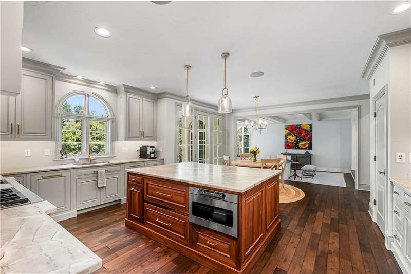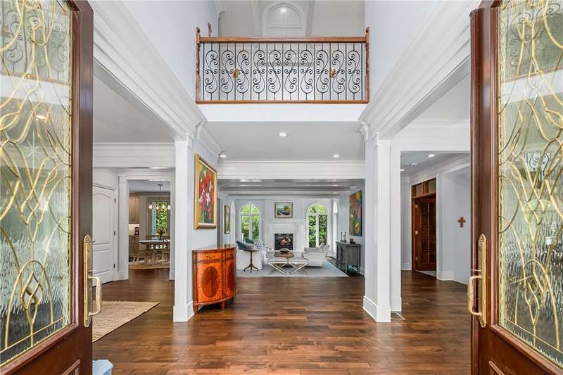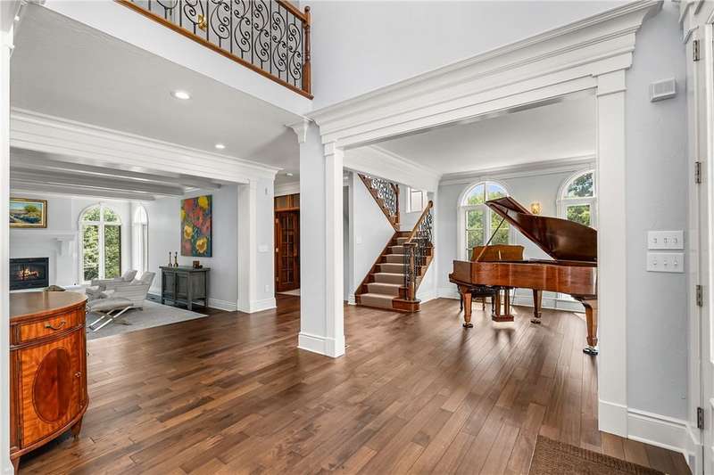 Behind a private gate, this remarkable 3-acre estate lives like a luxury resort. A serene private lake sets the tone; kayak, fish, or simply enjoy the view. The grounds are lush and made for relaxing or hosting unforgettable gatherings. Inside, an extensive renovation elevates the elegance with a fresh take on this custom kitchen featuring inset cabinetry, quartzite countertops, and top-tier appliances. New Canadian maple floors flow into a rich, paneled maple library. Four fireplaces add warmth and charm throughout. The primary suite is a sanctuary with Schonbek chandeliers, Kane carpeting, black walnut vanities, and a massive walk-in dressing room. Downstairs, the fun begins with a bourbon bar, full gym, and an 800-bottle wine cellar that open effortlessly to a covered patio all of which has been updated in the past year. A five-door garage accommodates up to six cars. This home offers a rare blend of refined living and breathtaking outdoor beauty all with low Butler county taxes.