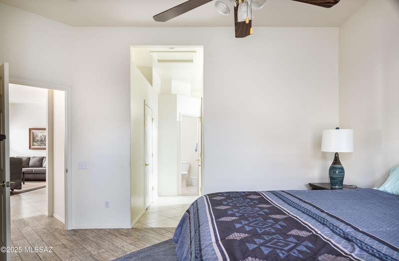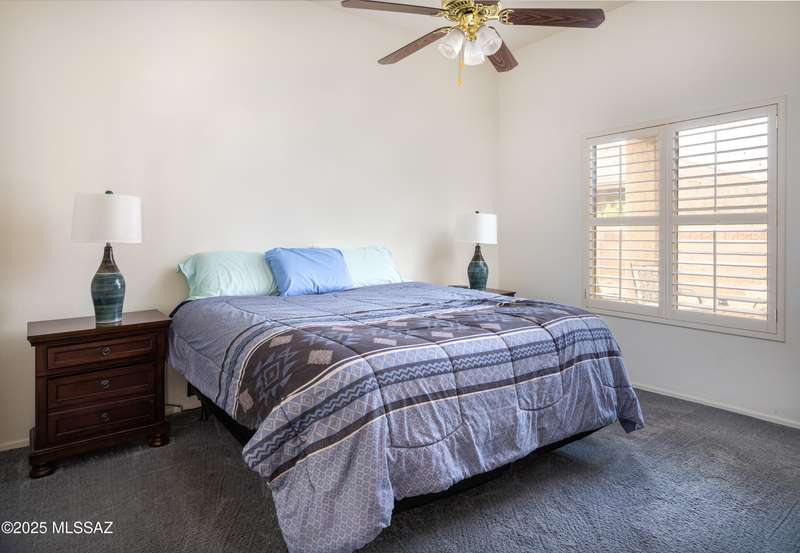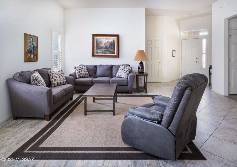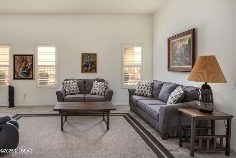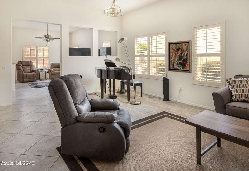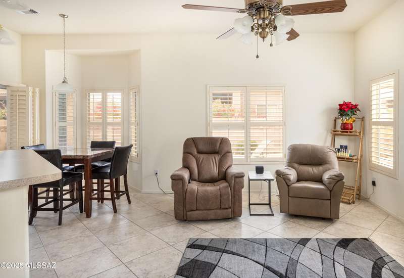 Beautifully Maintained Extended Aurora Model in The Highlands at Dove MountainThis spacious Extended Aurora model offers thoughtful upgrades and timeless appeal. Features include a bay window in the guest bedroom, an extended den, plantation shutters, and wood-look tile flooring throughout. The kitchen boasts 42'' upper cabinets, providing plenty of storage and style.Enjoy the beautifully landscaped backyard, complete with a covered patio and extended paver area -- perfect for relaxing or entertaining outdoors. The garage includes built-in storage cabinets, and the home has been exceptionally well maintained by the owner.Located in the desirable Highlands at Dove Mountain, an active adult community, residents enjoy an 18-hole championship golf course,