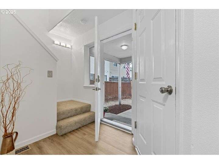 Price Drop - Motivated Sellers! Brand new carpet & paint compliment the newer LVP flooring. Close to shopping, VanMall, bus lines and freeways, 15 min to PDX airport. Large, vaulted master suite opens to walk-in closet with a classy barn door, private bath and separate linen closet. NO HOA, Investment property potential. Spacious family room with a cozy gas fireplace. Walking distance to Elementary school. Fully fenced backyard with gate, paver patio and new retaining wall where a beautiful shade garden could be created amongst the tall fir trees. New roof in 2022 for your peace of mind. Newer water heater. Ring doorbell and camera. End unit offers ample parking and raised garden beds ready for plantings out front. 2 side-by-side cars can park in driveway. Come check out this move-in ready Townhome.