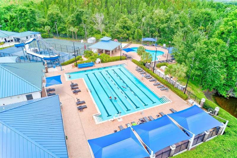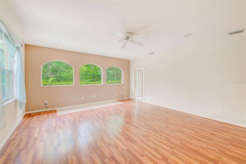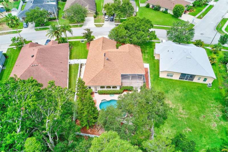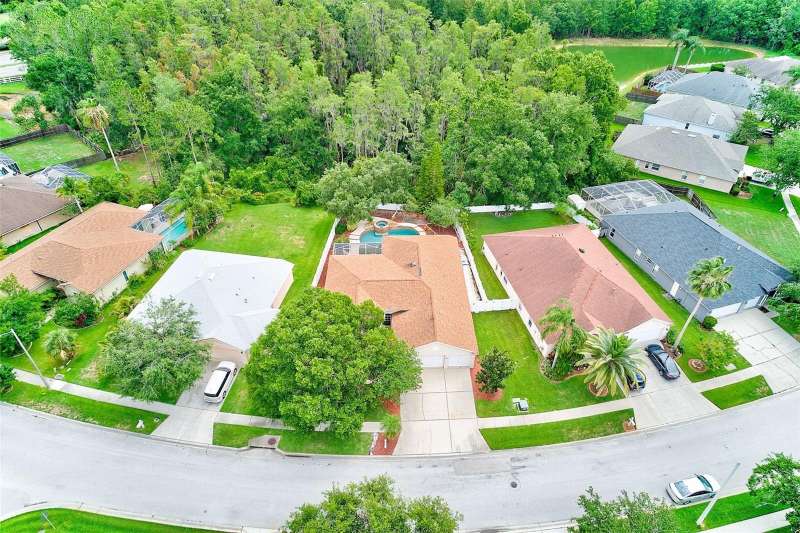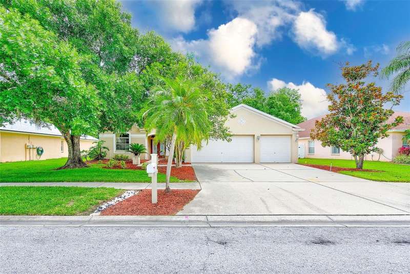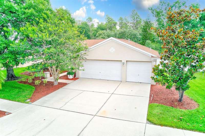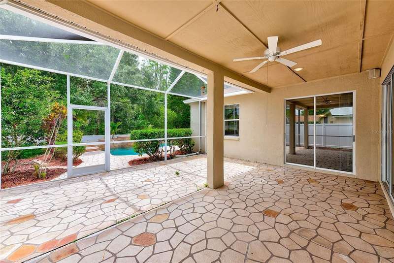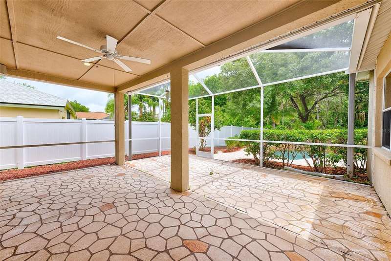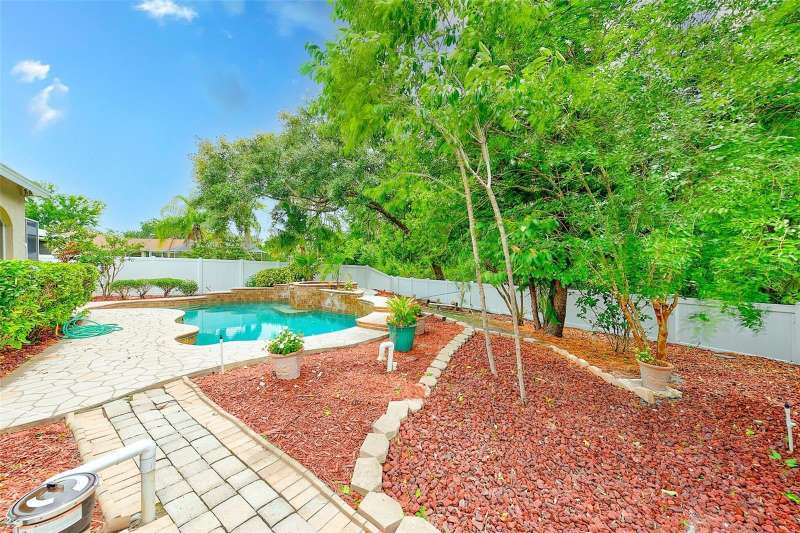 Under contract-accepting backup offers. LOCATION! LOCATION! LOCATION! You must see this lovely 4-bedroom, 3-bathroom home in Meadow Pointe with backyard view of adjoining conservation area. Fully fenced yard creates your own private oasis for relaxing in your beautiful, spacious pool or accompanying spa with the pool waterfall providing a soothing soundtrack. An oversized screened lanai serves as the perfect spot for outdoor entertaining day or night. Inside the split floor plan opens into a large living room and formal dining room. To the right a spacious kitchen featuring a breakfast bar, pantry, and center island with a built-in wine cooler, opens to an expansive family room with sliders opening to the lanai and 4 large windows facing the pool to let in all that wonderful Florida sunshine. The family room provides access to a door leading to the pool deck, a full bathroom, and a bedroom. Two other sizeable bedrooms and a second full bath also occupy this side of the house. Opposite the kitchen is a dedicated laundry room that also provides entry to an expansive 3 car garage. The comfortable primary suite occupies the left side of the house and includes sliders that open to the lanai, his and her walk-in closets, and bathroom with a Jacuzzi tub, separate shower and his and her vanities. Best of all, no HOA fees in Meadow Pointe but plenty of amenities including a fitness center, recreation center, and tennis and racquetball courts. Meadow Point is close to schools, hospitals, shopping, and I-75. Like I said, LOCATION! LOCATION! LOCATION! Come see for yourself.